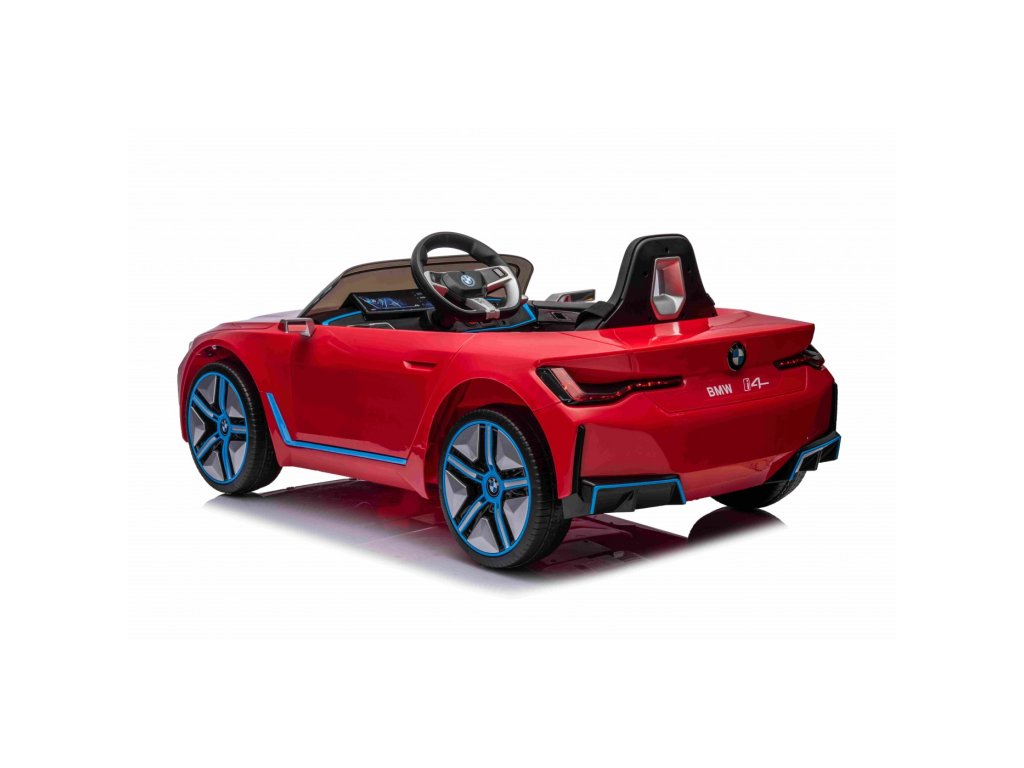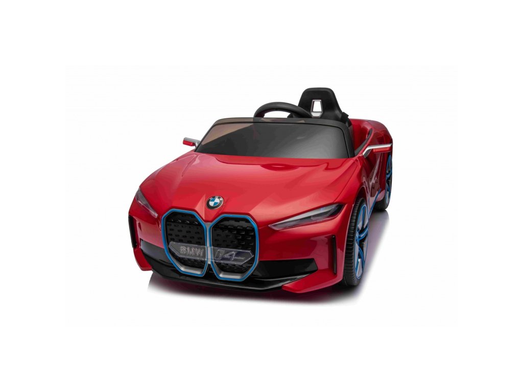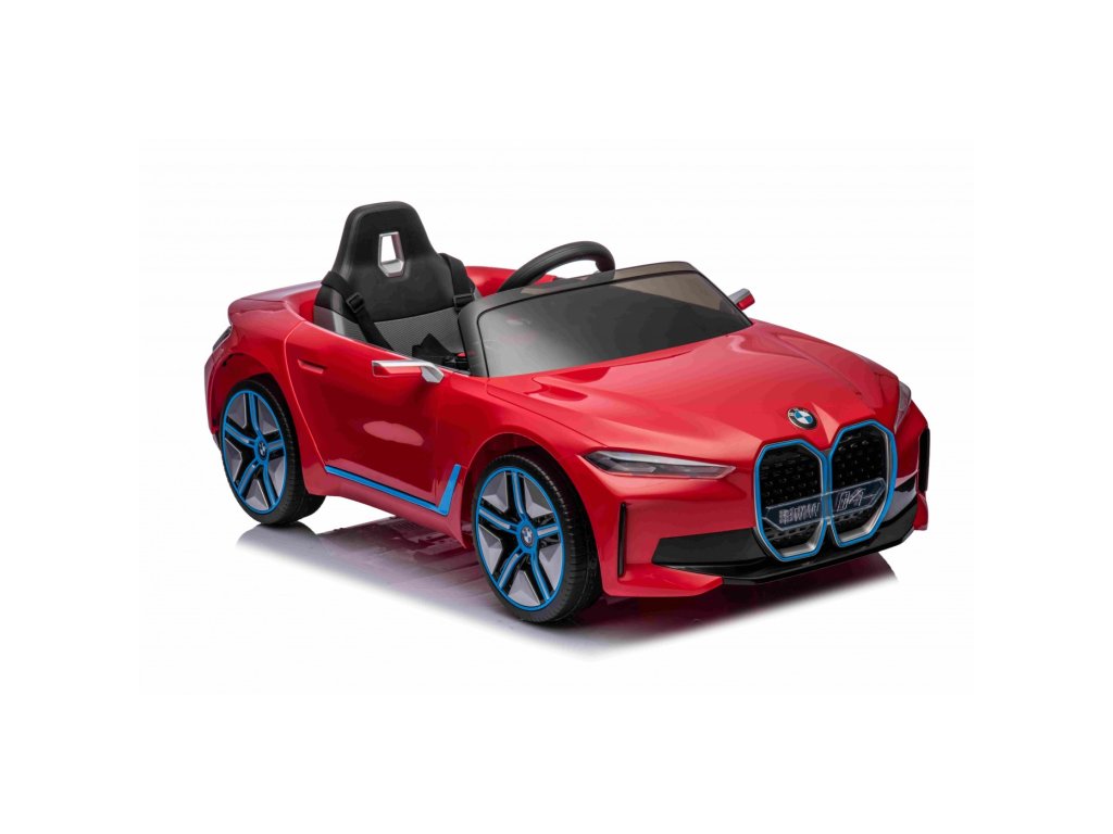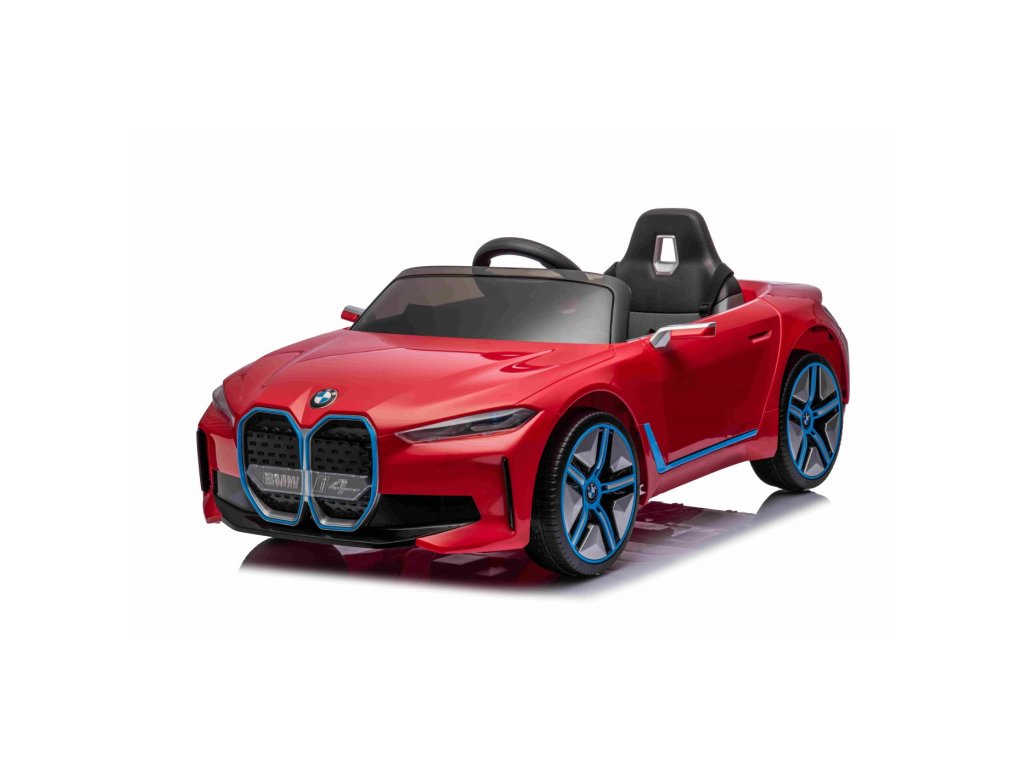 Детска Акумулаторна кола BMW i4 червена с лиценз и богато оборудване и иновативен дизайн. Оборудвана е с EVA пянирани гуми, които са тихи и не създават шум при движение.