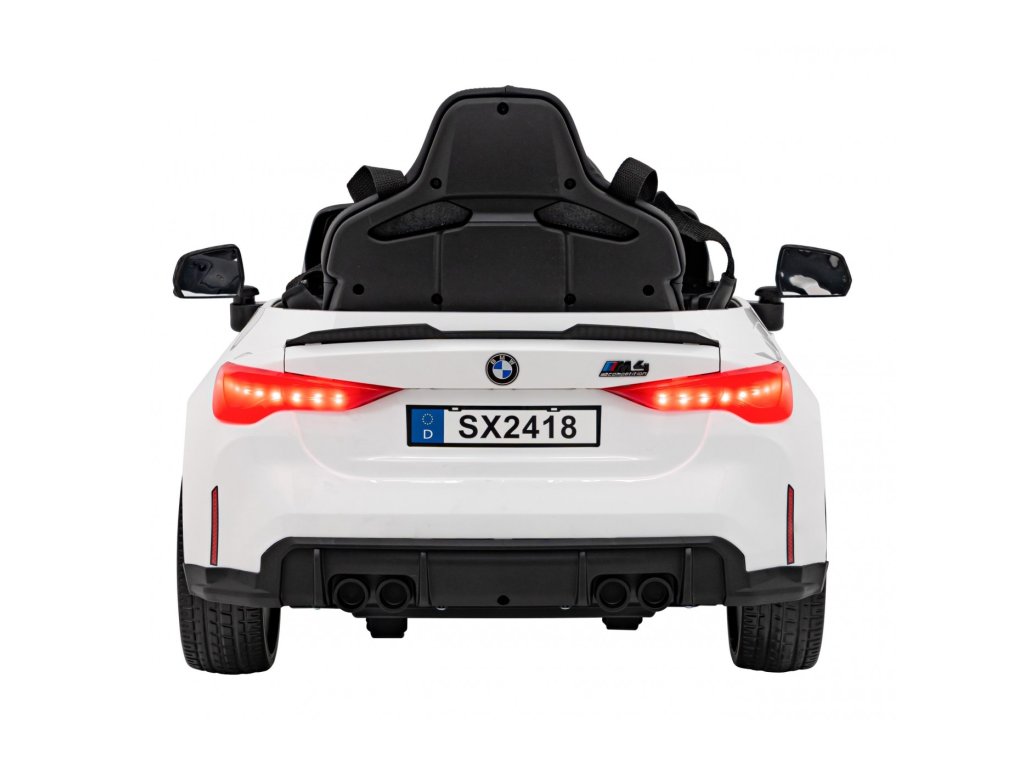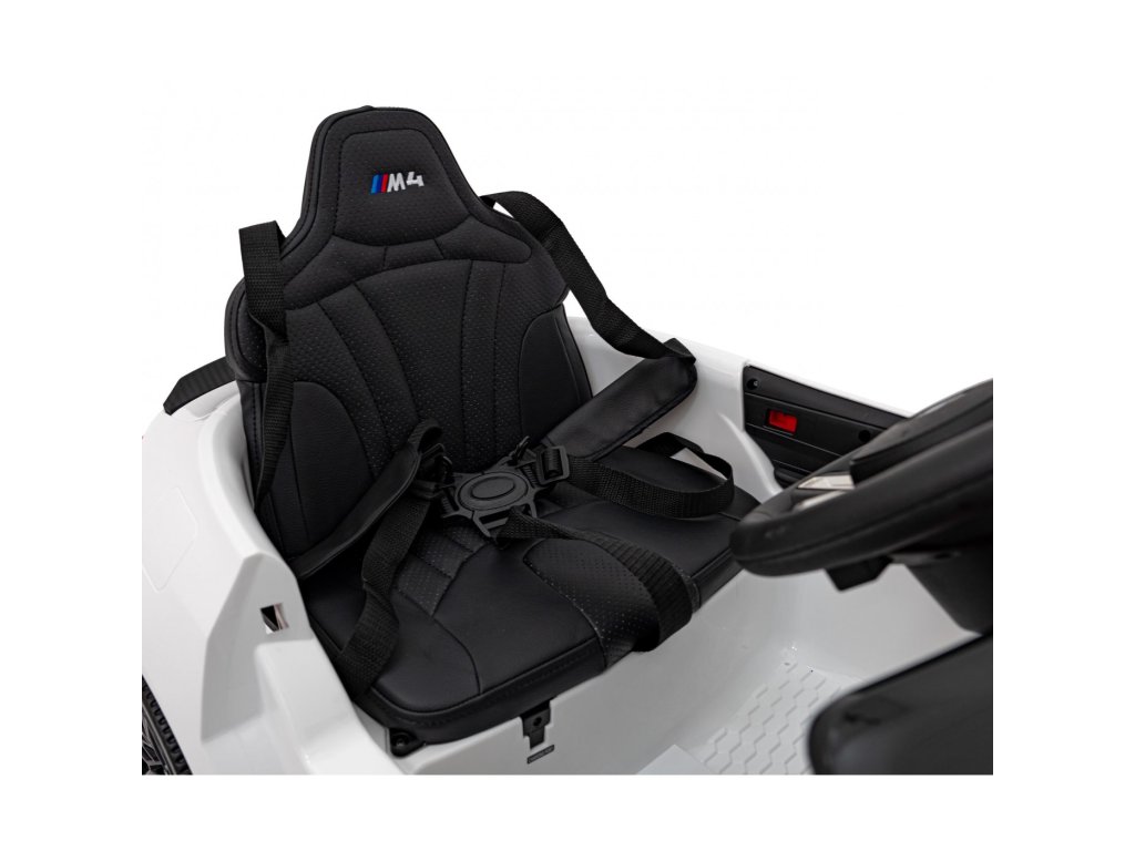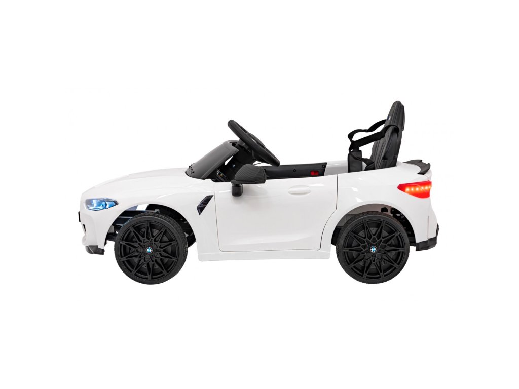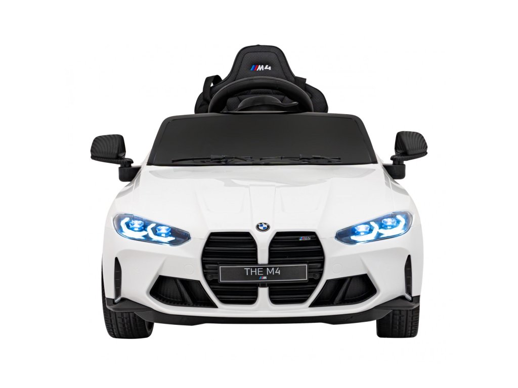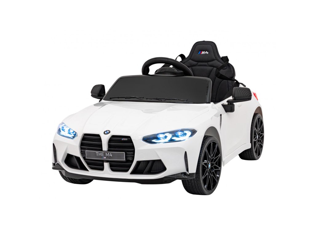 Акумулаторна кола BMW M4 бяло разполага с два мотора с обща мощност от 70W и акумулаторна батерия с капацитет 12V 7Ah. Комфортното шофиране се гарантира от пяна EVA гуми и седалка, облицована с екологична кожена тапицерия. За още по-приятно преживяване на детето са включени музикален панел с MP3, USB, AUX и Bluetooth функционалности. Максималното натоварване на автомобилчето е 30 кг. Колата разполага с предно и задно LED осветление и отварящи се врати.
