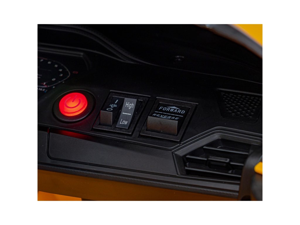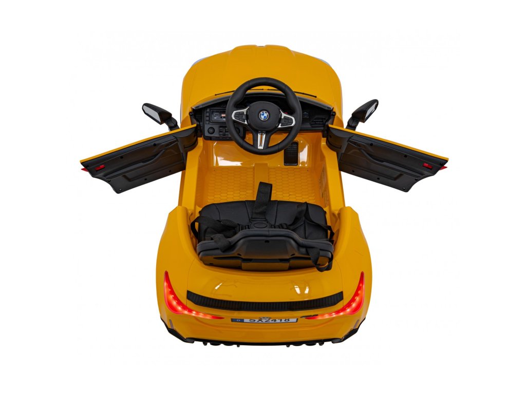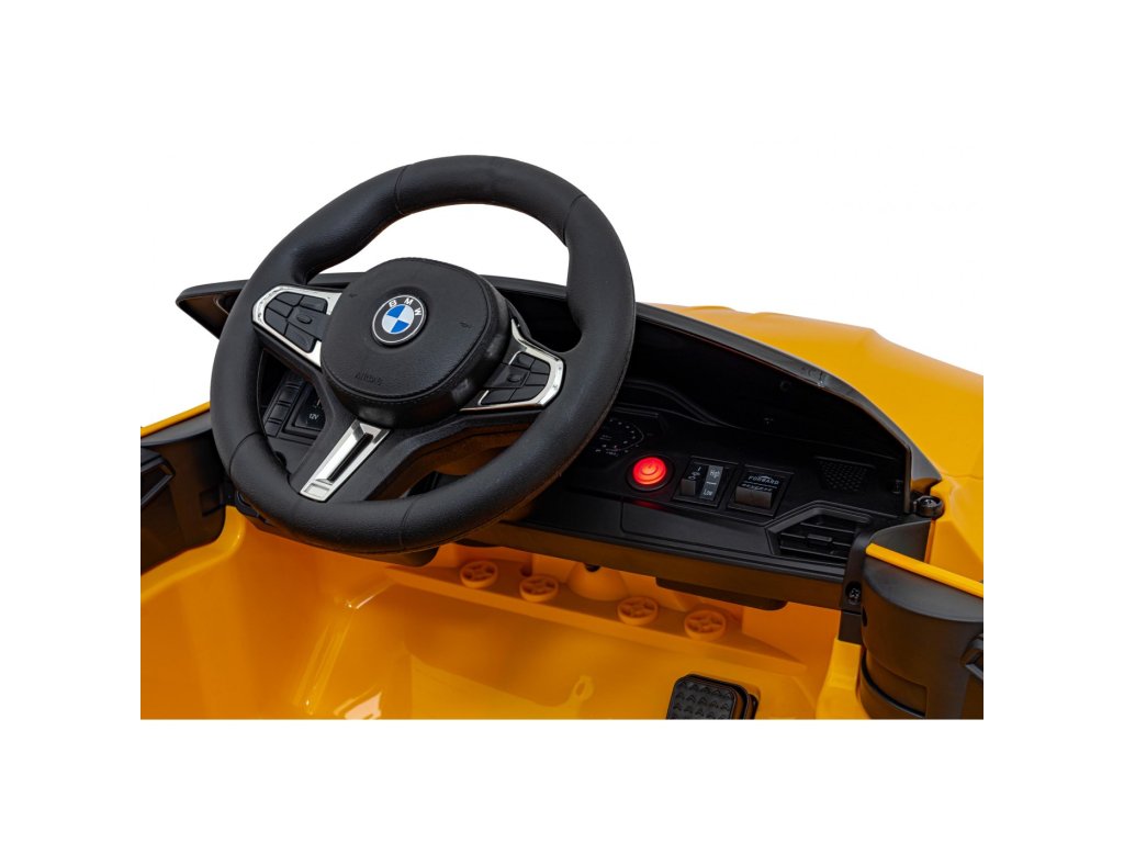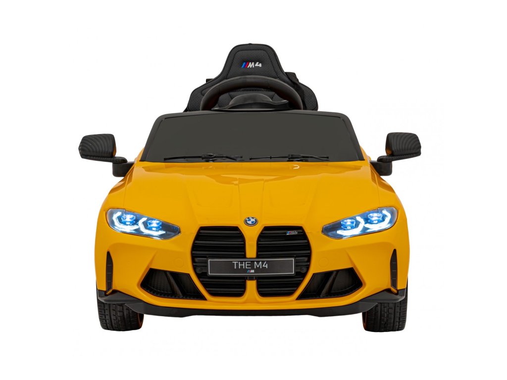 Акумулаторна кола BMW M4 жълта разполага с два мотора с обща мощност от 70W и батерия с капацитет 12V 7Ah. За комфортно управление се грижат EVA гуми от пяна и седалка, покрита с екологична кожа. На детето със сигурност ще му хареса музикалният панел с MP3, USB, AUX и Bluetooth функционалности. Товароносимостта на колата е 30 кг. Колата е оборудвана с предно и задно LED осветление и врати, които се отварят.
