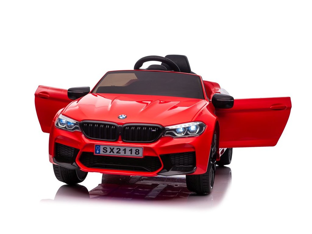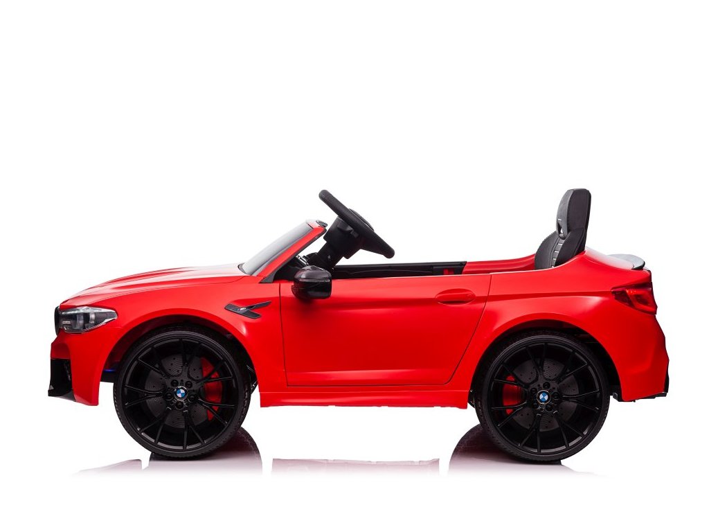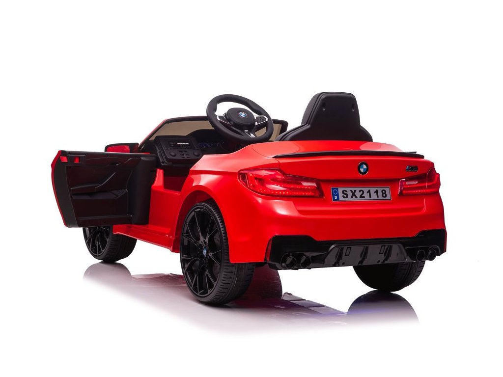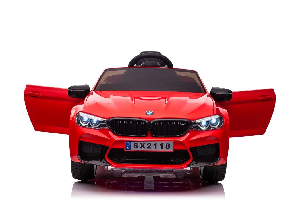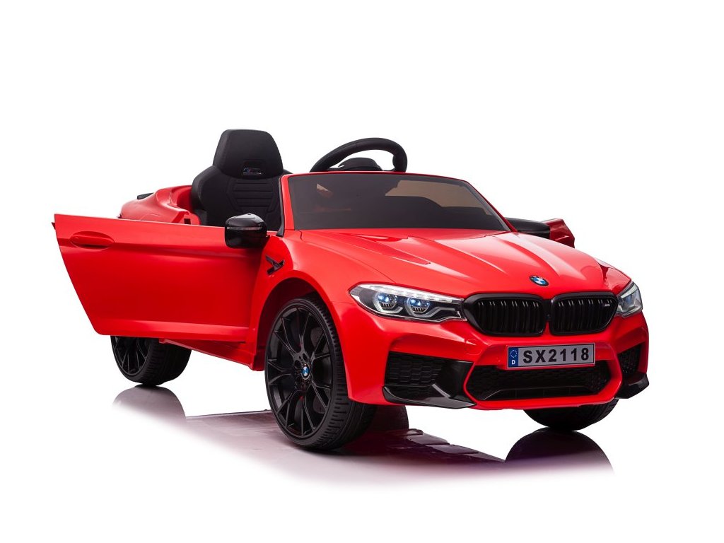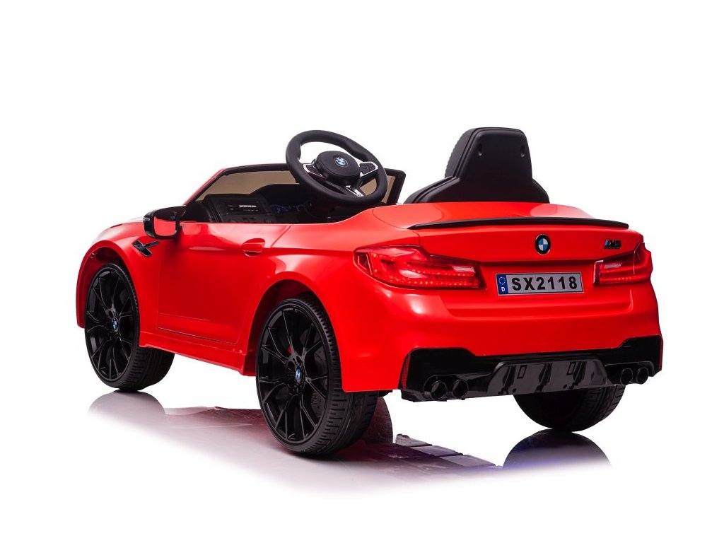 Акумулаторна кола BMW M5 червено е лицензирана от BMW. Акумулаторната кола BMW M5 е оборудвана с два мощни мотора и батерия с капацитет 12V 7Ah. Колата има предни и задни LED светлини. Със своя музикален панел, устройството разполага с MP3 плейър, вход за USB и предварително записани мелодии. На волана е разположен клаксон.
