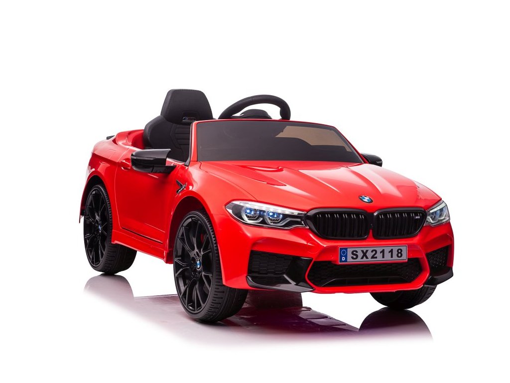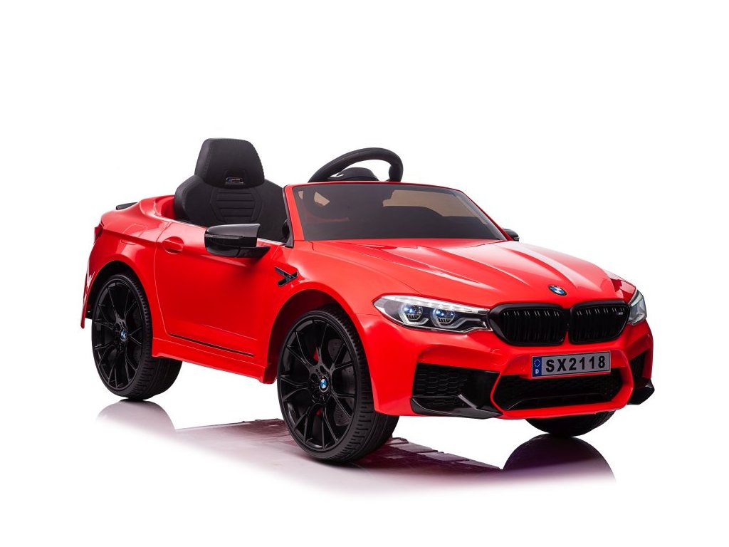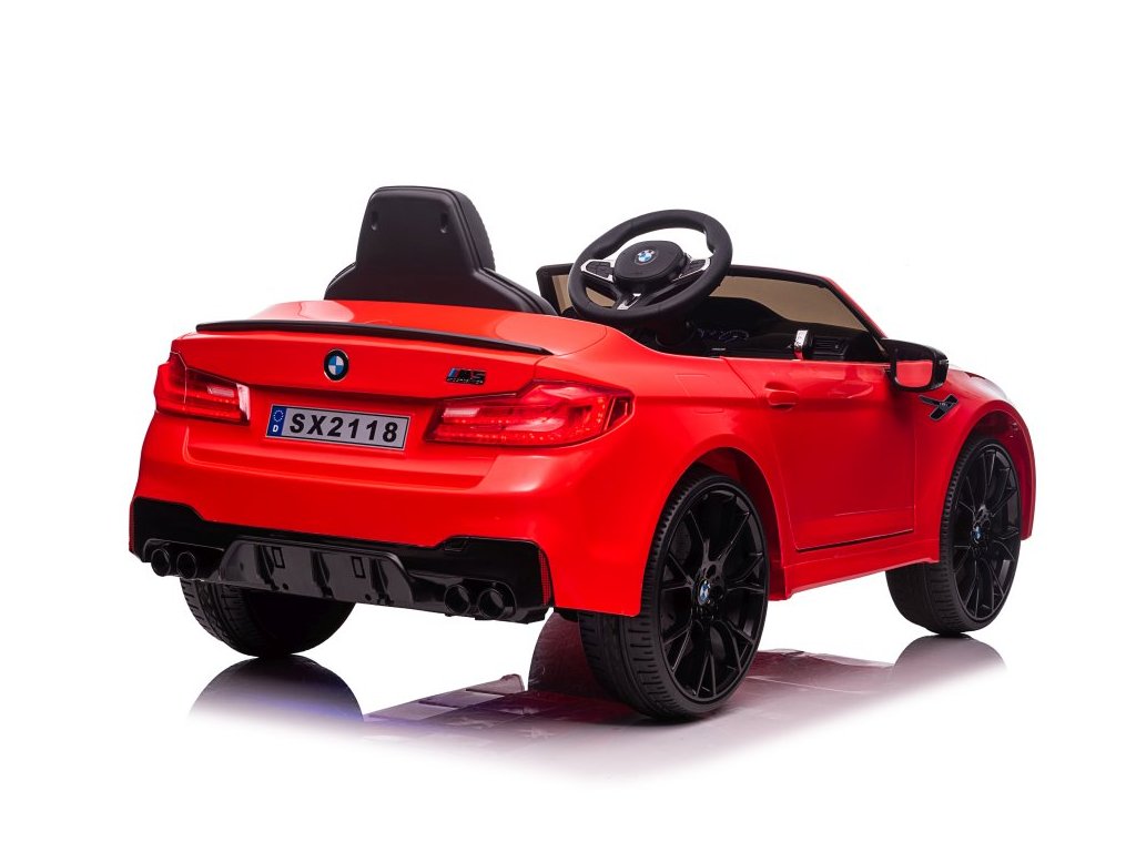 Детска акумулаторна кола с лицензия от марката BMW, модел Акумулаторна кола BMW M5 DRIFT спорт червена 24V, снабдена с меки пенни колела от EVA с множество впечатляващи функции. Една от тях е функцията DRIFT (димящи гуми). Интериорът на колата включва удобна седалка от мека екологична кожа с предпазни колани. Музикален панел на таблото поддържа вход за MP3 и USB.
