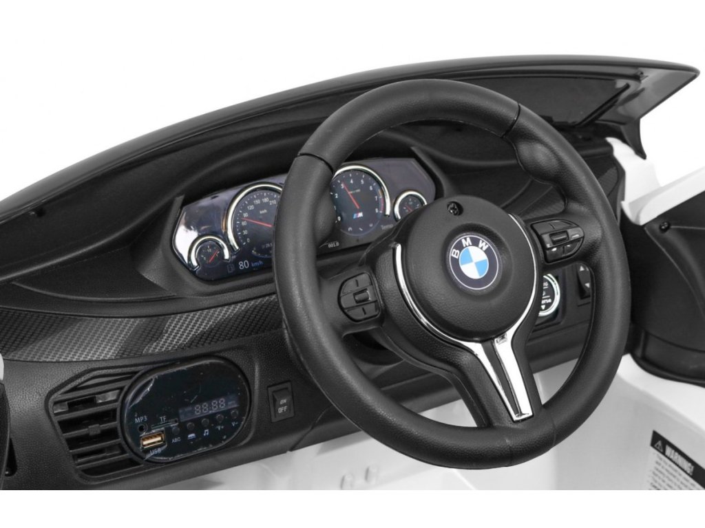 Представяме Ви луксозната и много мощна детска електрическа кола с лиценз BMW, с възможност за зареждане на акумулатора, предназначена за 1 дете. Продуктът е изработен от здрав, твърд пластмасов материал, което гарантира високо качество. Колата се движи напред и назад. Освен това е оборудвана със звукови и светлинни ефекти, както и с приятна музика. Играчката има реалистичен звук на двигател. Превозното средство може да се управлява с дистанционно управление или детето може да управлява автомобила самостоятелно. В колата можете да включите и собствено MP3 устройство, така че детето да слуша любимите си песни. В комплекта са включени предпазен калъф за покриване на колата и USB флаш памет, съдържаща инструктивно видео.