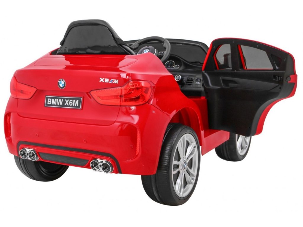 Луксозно и изключително мощно електрическо детско возило с възможност за зареждане на акумулатора, предназначено за 1 дете. Продуктът е изработен от здрав, качествен пластмасов материал. Колата се движи напред и назад. Освен това е оборудвана със звукови и светлинни ефекти, както и приятна музика. Акумулаторната кола BMW X6 M боядисана червена има реалистичен звук на двигател. Превозното средство може да се управлява с дистанционно управление или детето може да шофира самостоятелно. В колата може да свържете собствено MP3 устройство, така че детето да слуша любимата си музика. В комплекта е включено покривало за колата и USB флаш памет с инструктивно видео.