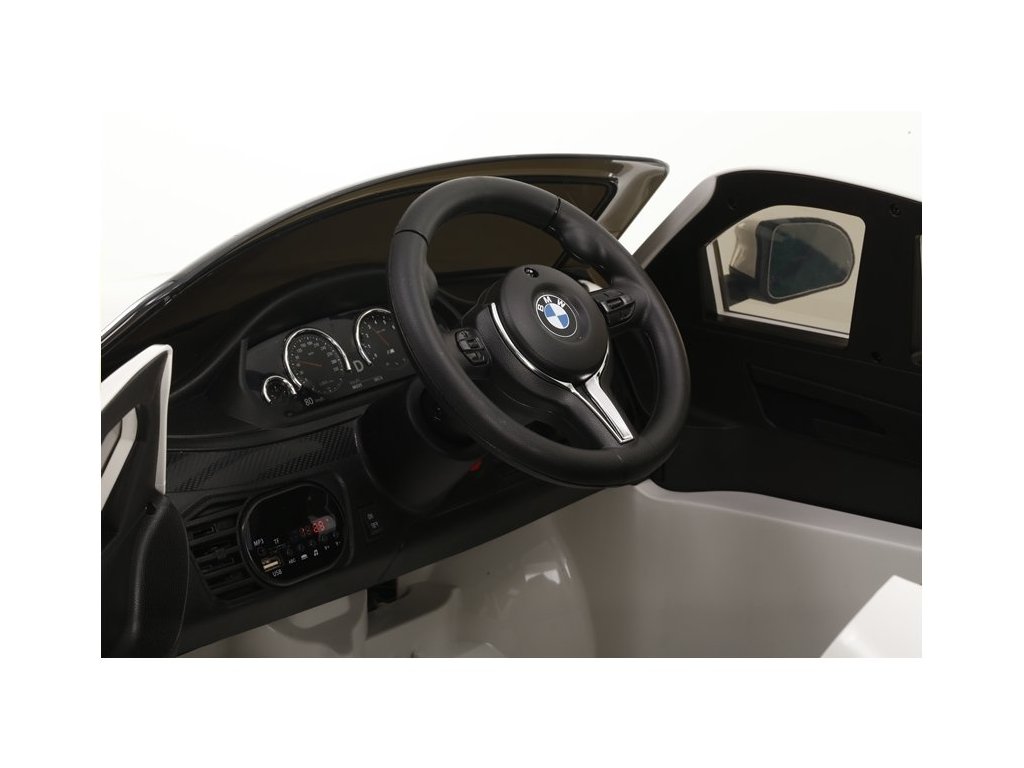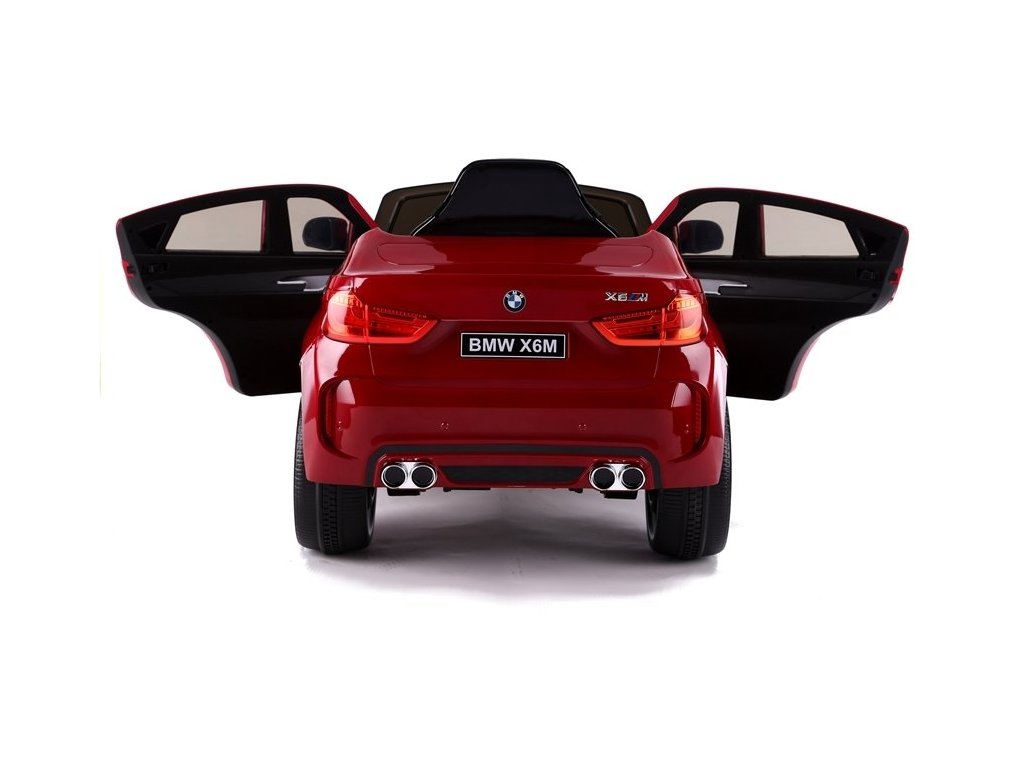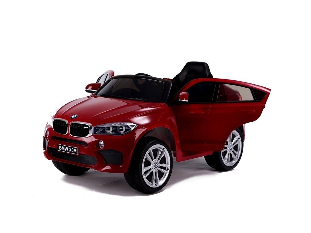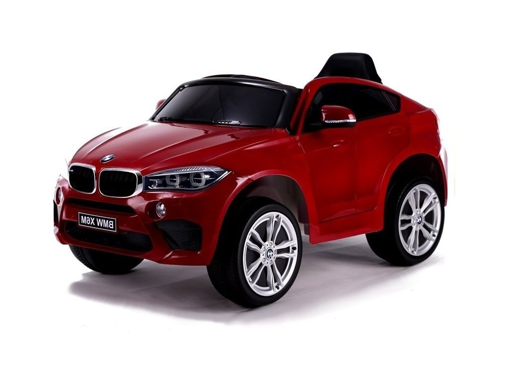 Детски електрически автомобил BMW X6 M червена лакова с иновативно дистанционно управление, предназначено за родители. Електрическият автомобил разполага с удобна седалка и за сигурността на детето е оборудван с обезопасителен колан. Колата разполага с табло, волан, осветени предни фарове и аудио панел. Управлението на превозното средство може да става по два начина – чрез дистанционното управление, предназначено за родители, които избират посока и скорост, или детето може напълно самостоятелно да управлява автомобила. Колелата на електрическата кола са изработени от мека пяна, което осигурява плавно и комфортно каране. BMW X6 M – идеален за всеки любител на по-големи детски електромобили!