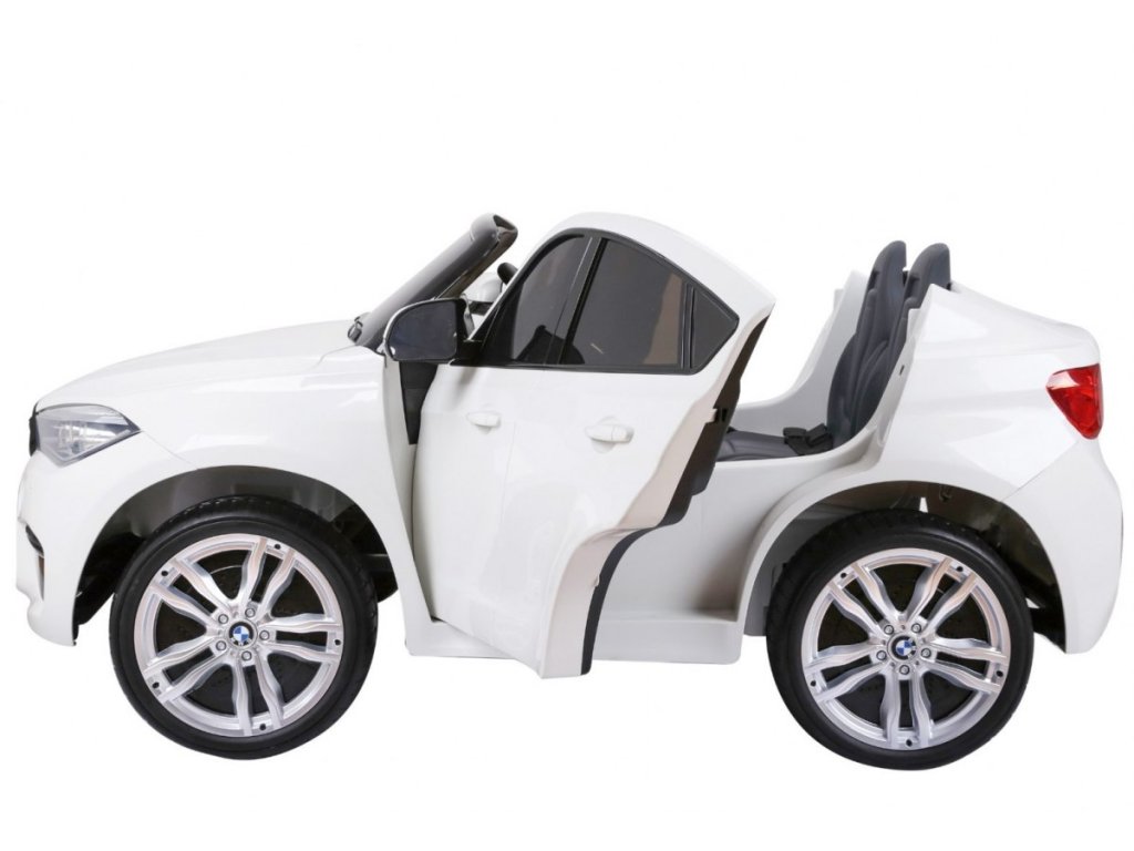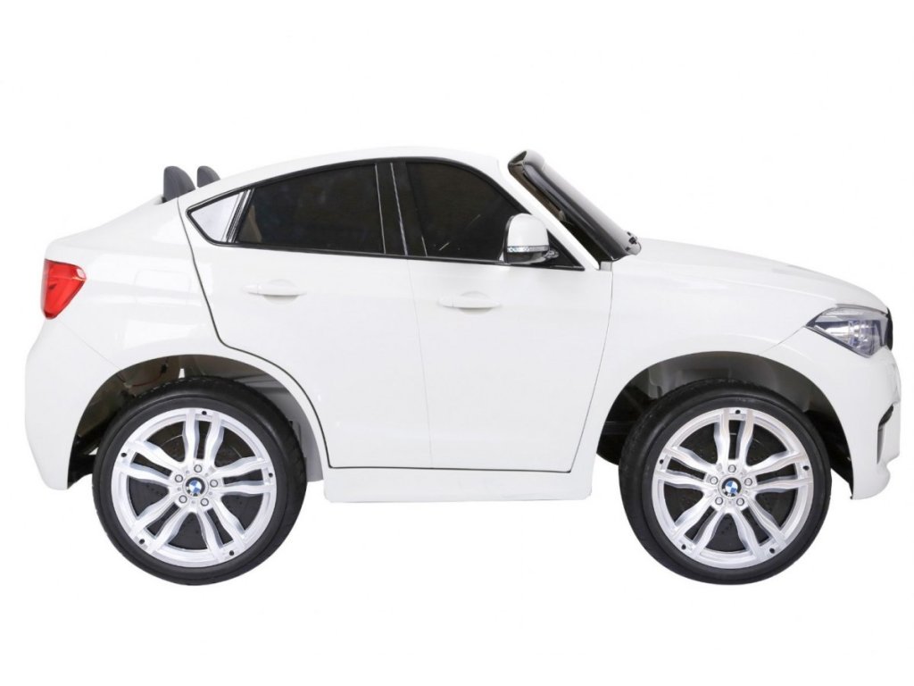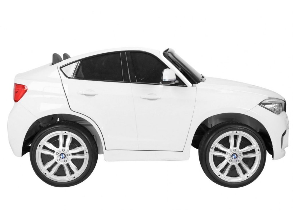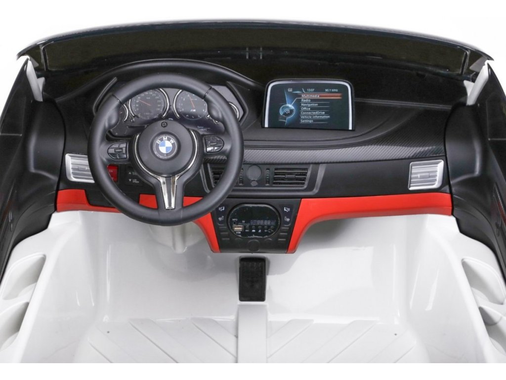 Лицензирана акумулаторна кола BMW X6 M с двуместна конструкция и електрическа спирачка. Кола разполага с кожена седалка и отварящи се врати, като за безопасността на детето на седалката е поставен обезопасителен колан. Акумулаторната кола е оборудвана и с осветяващи се предни и задни фарове. За малките музикални почитатели има възможност за свързване на MP3 и USB устройства. Цифров индикатор за състоянието и заряда на батерията. Кола разполага с дистанционно управление ново поколение на 2.4 GHz. 2x мотор с задвижване на двете задни колела. Карането е възможно напред и назад с 3 скорости (бавна, бърза). Благодарение на това оборудване е подходяща и за каране в терен. Подходяща и за по-малки деца – благодарение на възможност за настройка на по-ниска скорост. Тази ексклузивна акумулаторна кола ще донесе удоволствие както на детето, така и на родителите.