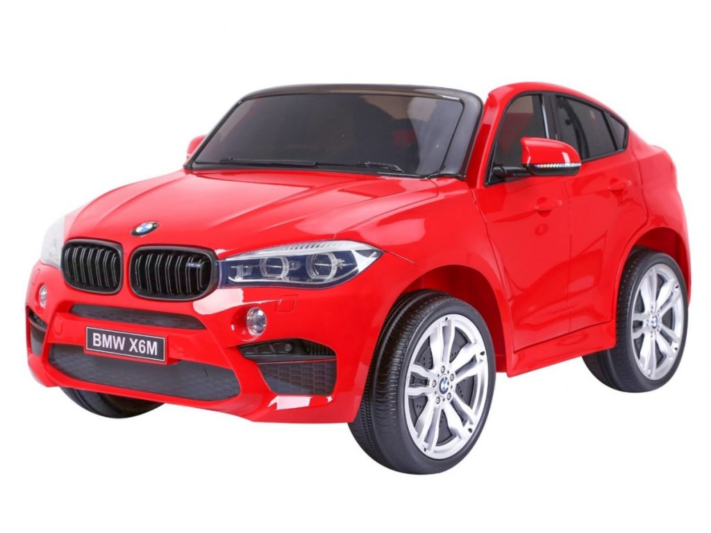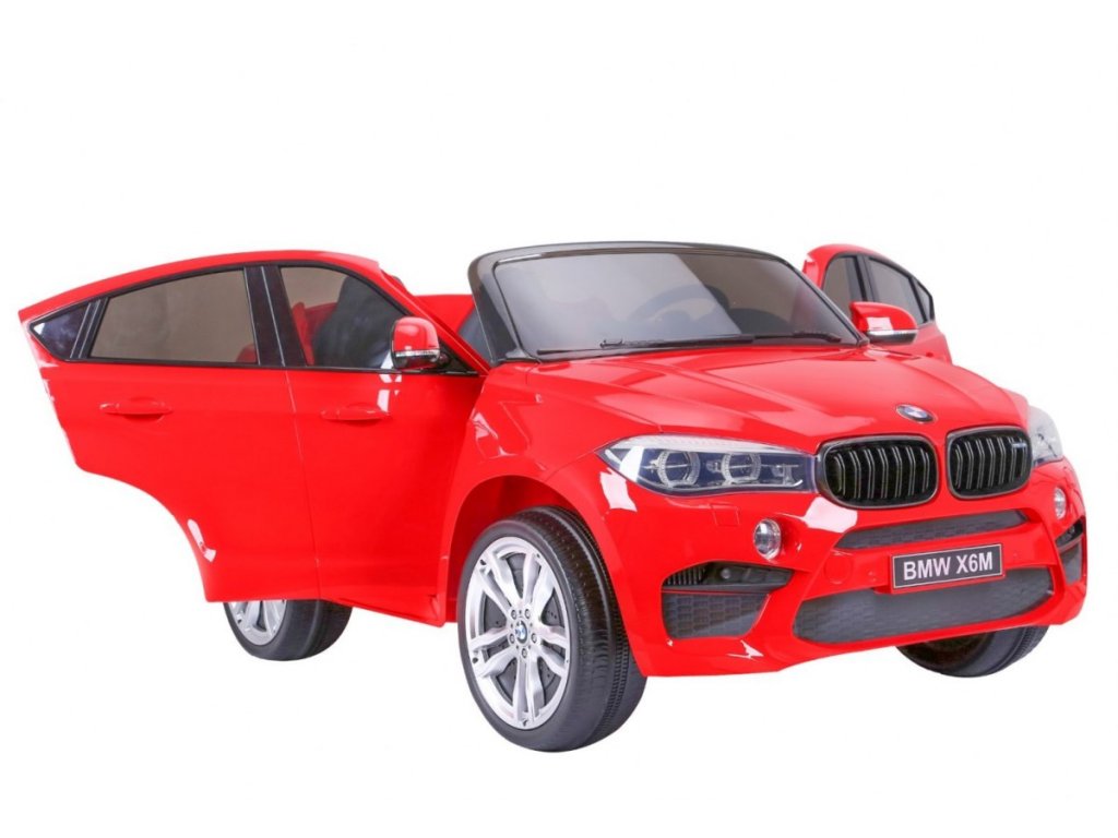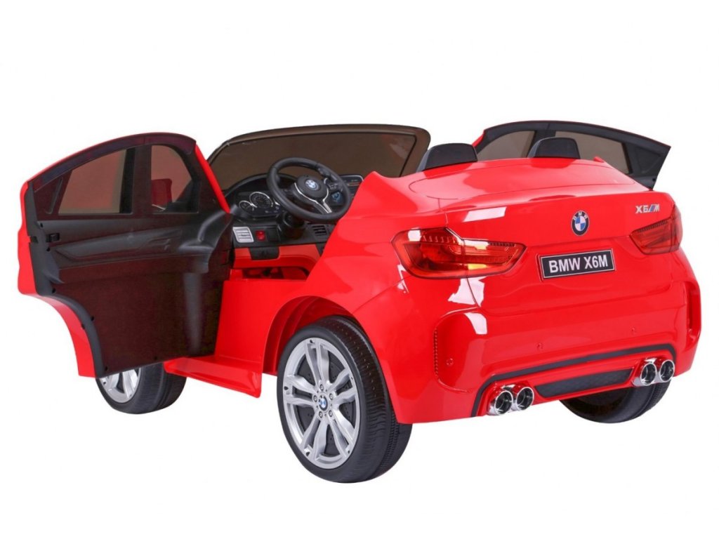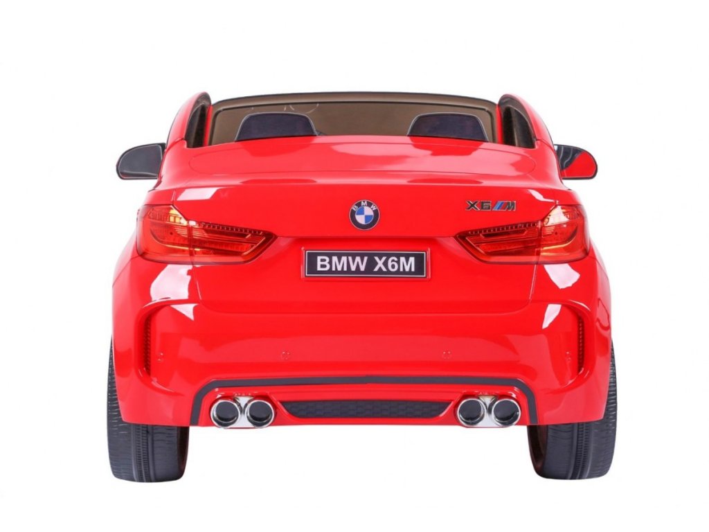 Лицензирана акумулаторна кола BMW X6 M с двуместна XXL конструкция и електрическа спирачка. Колата разполага с кожена седалка и отварящи се врати, а за безопасността на детето е осигурен предпазен колан на седалката. Колата е оборудвана със светещи предни и задни фарове. За малките музикални почитатели е наличен вход за MP3 и USB. Цифров индикатор показва състоянието и заряда на батерията. Колата се управлява с дистанционно управление 2,4 GHz от ново поколение. Два мотора за задвижване на двете задни колела. Акумулаторната кола може да се движи напред и назад с 3 скорости (бавна, бърза). Благодарение на тази функционалност, тя е подходяща и за каране на неравен терен. Възможност за използване и от по-малки деца – благодарение на настройката за по-ниска скорост. Тази ексклузивна акумулаторна кола ще донесе удоволствие както на детето, така и на родителите.