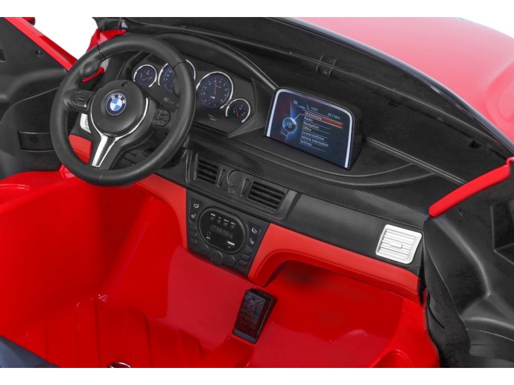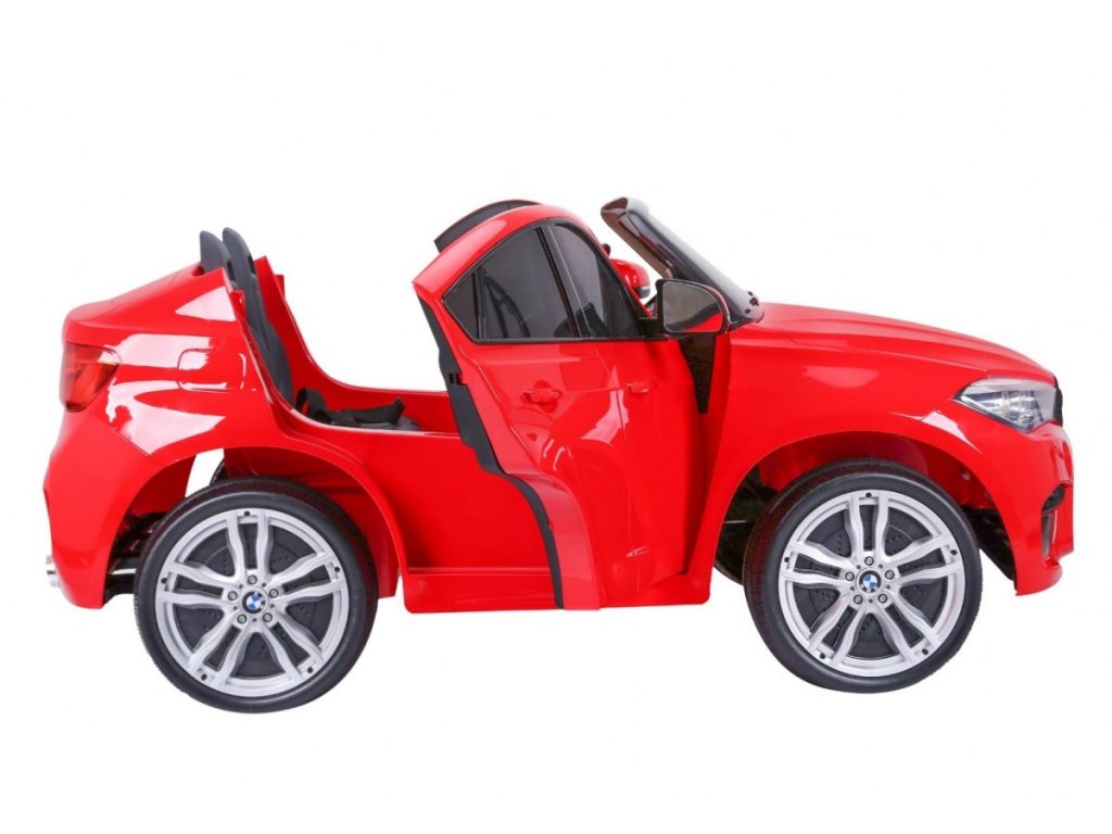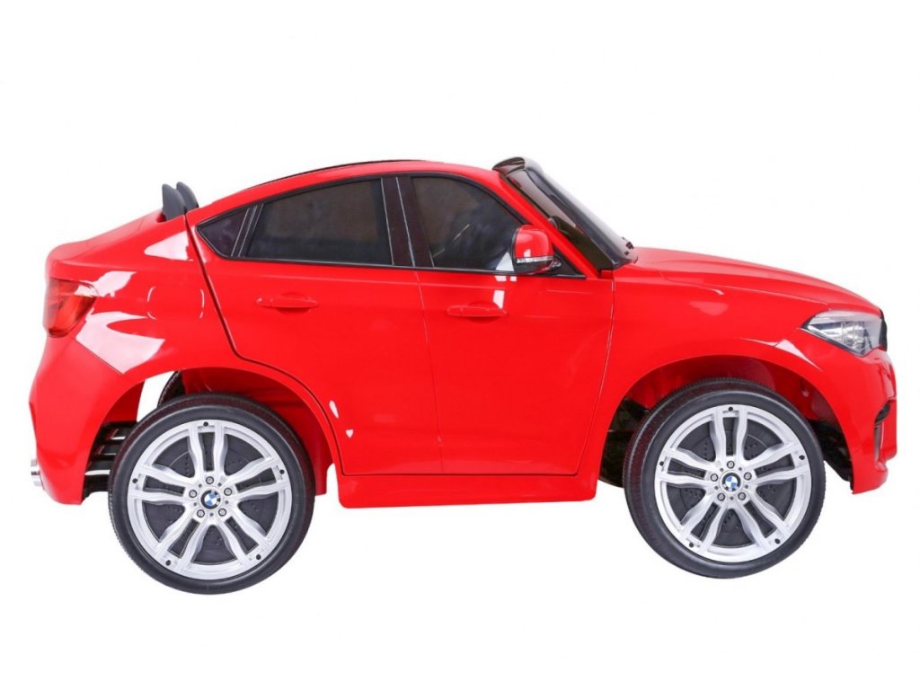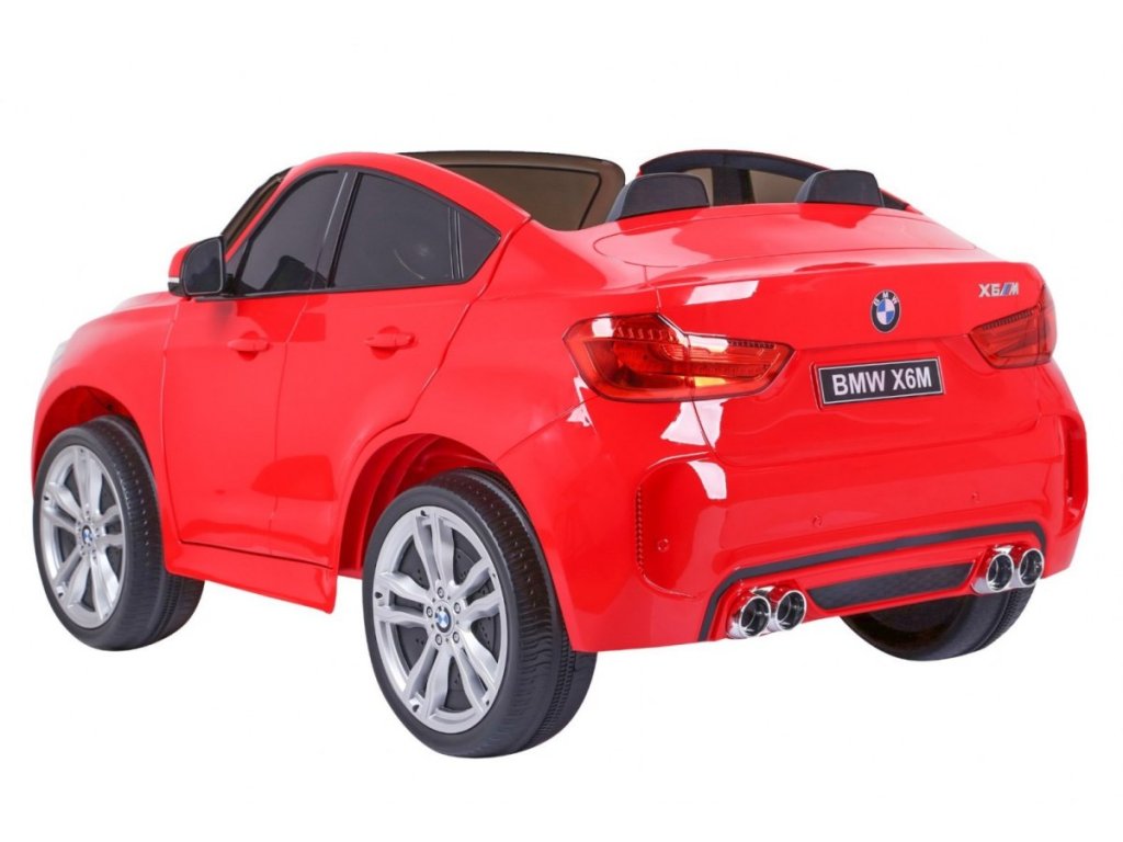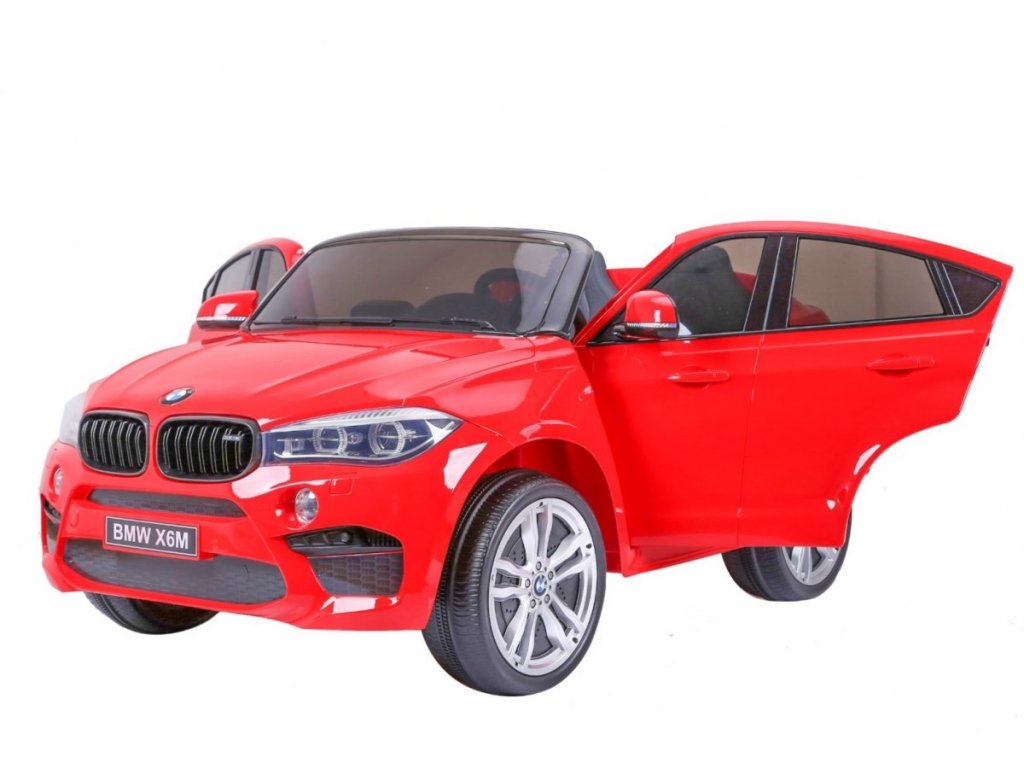 Лицензирана акумулаторна кола BMW X6 M с двуместна XXL конструкция и електрическа спирачка. Колата разполага с кожена седалка и отварящи се врати, а за безопасността на детето е осигурен предпазен колан на седалката. Колата е оборудвана със светещи предни и задни фарове. За малките музикални почитатели е наличен вход за MP3 и USB. Цифров индикатор показва състоянието и заряда на батерията. Колата се управлява с дистанционно управление 2,4 GHz от ново поколение. Два мотора за задвижване на двете задни колела. Акумулаторната кола може да се движи напред и назад с 3 скорости (бавна, бърза). Благодарение на тази функционалност, тя е подходяща и за каране на неравен терен. Възможност за използване и от по-малки деца – благодарение на настройката за по-ниска скорост. Тази ексклузивна акумулаторна кола ще донесе удоволствие както на детето, така и на родителите.