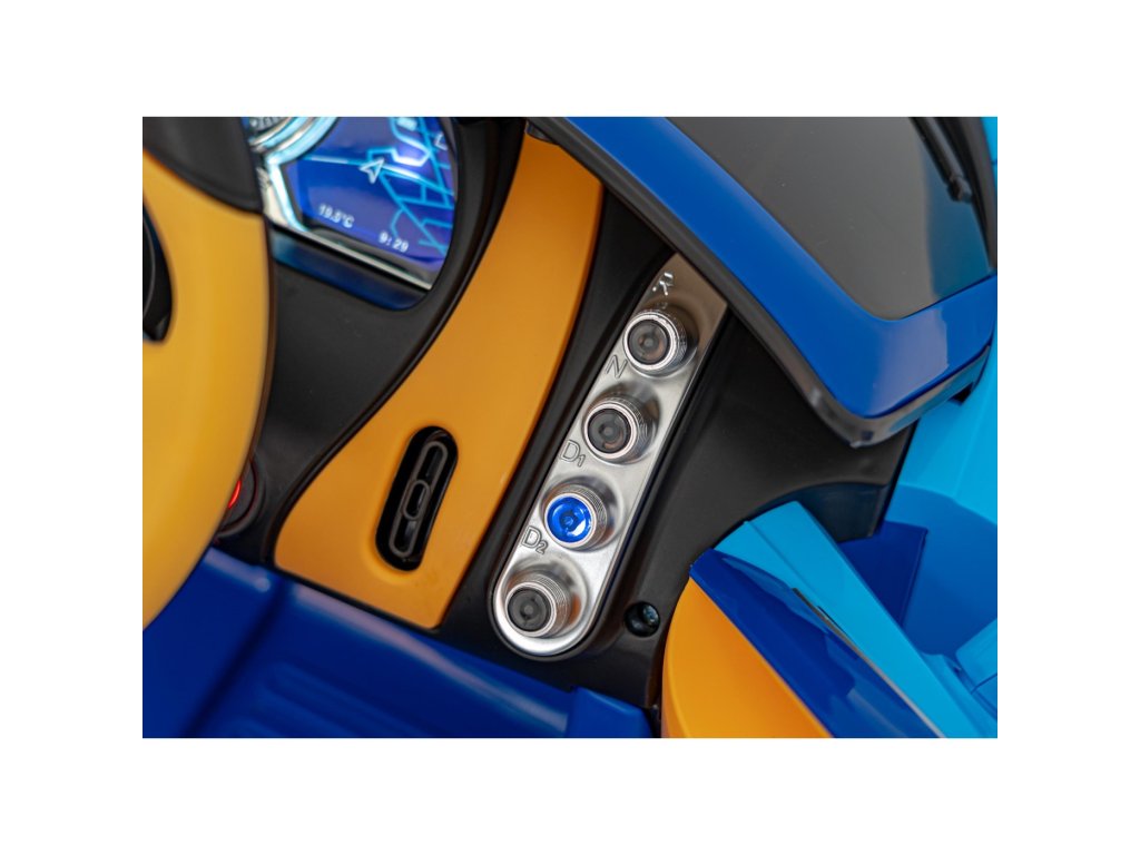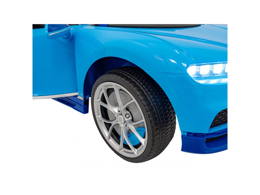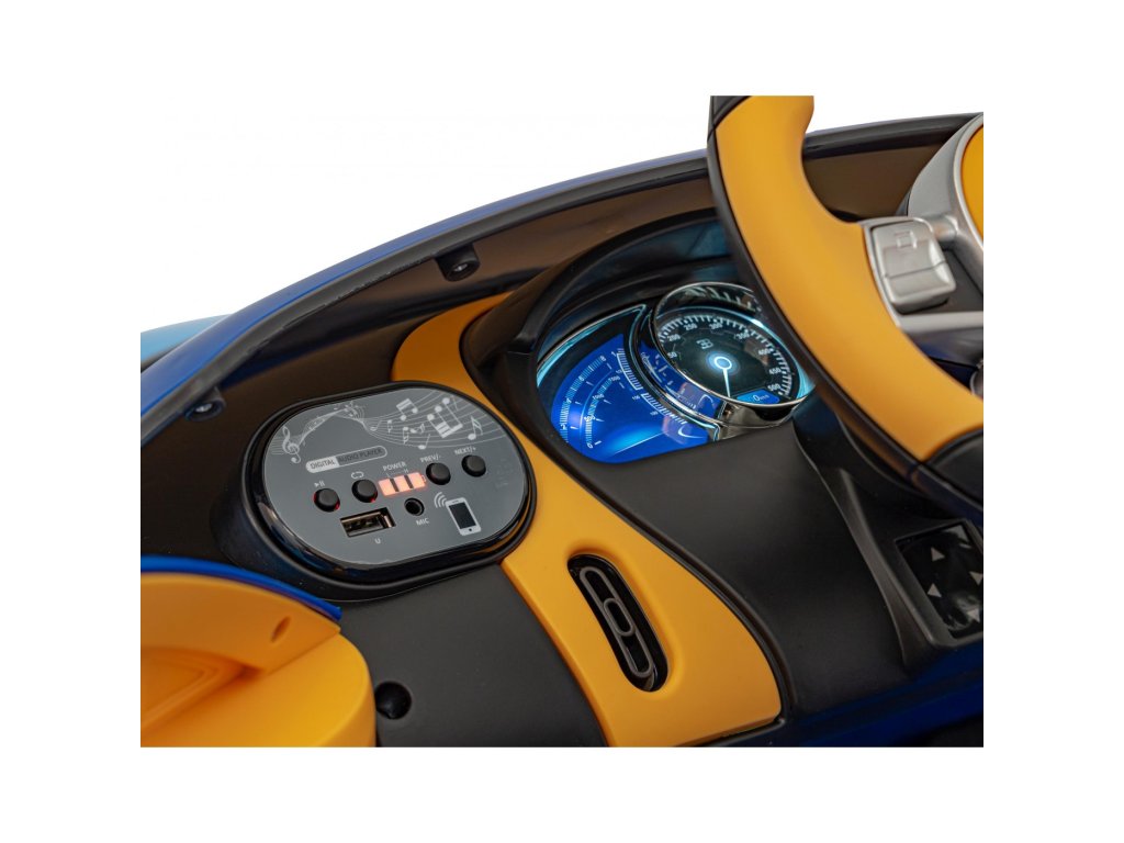 Акумулаторна кола Bugatti Chiron синя от утвърдена марка Bugatti с два мотора с обща мощност от 70W, която няма как да липсва във всяко детско гаражче. Кола се задвижва от батерия с капацитет 12V 7Ah. Максималното натоварване на возилото е 30 кг. По време на каране детето ще се забавлява с музикален панел с MP3, Bluetooth, USB и предварително записани мелодии.