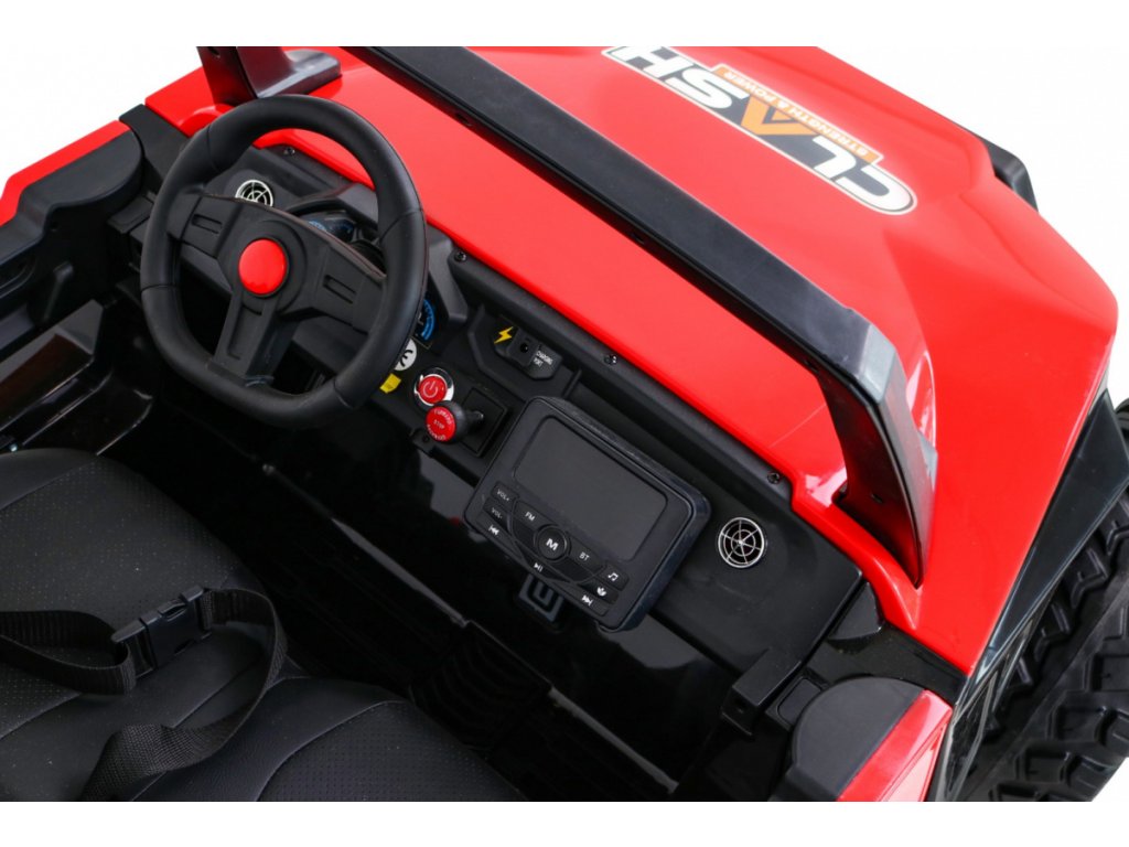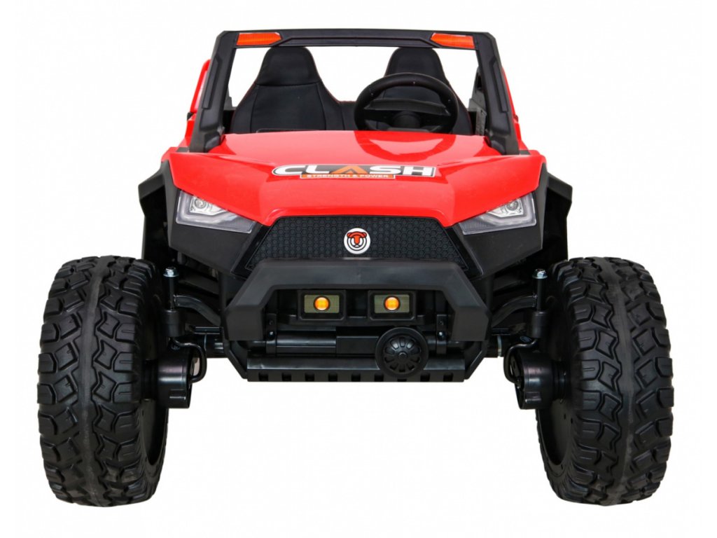Акумулаторна кола Buggy Clash 4x4 червена е предназначена за деца с максимално тегло до 30 кг. Моделът разполага със звукови и светлинни ефекти. Дистанционното управление притежава бутон за спиране за незабавно спиране на колата. Благодарение на задвижването на четирите колела, лесно преодолявате склонове и неравни терени.