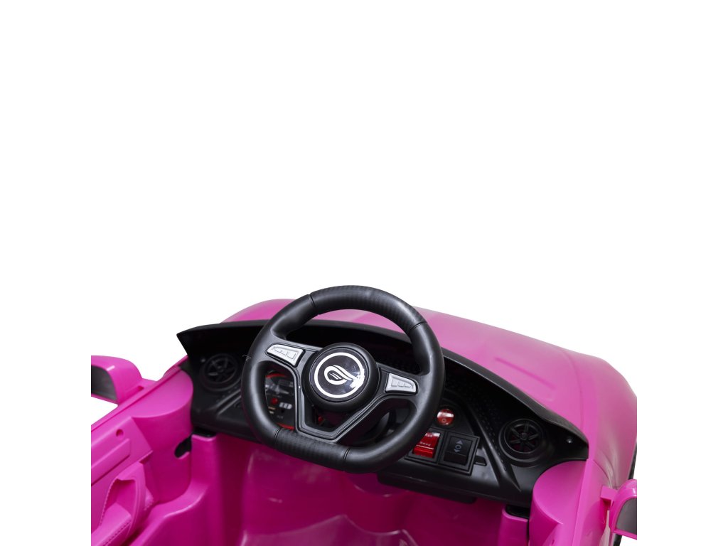 Детска акумулаторна кола Cabrio Fast Wing розова - Ремонтirana с богато оборудване и иновативен дизайн. Интериорът на количката е оборудван със седалка с предпазни колани, музикална система с входове AUX, MP3, USB и бутони с мелодии. За пътя е осигурено осветление с предни LED светлини.