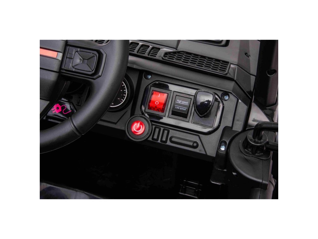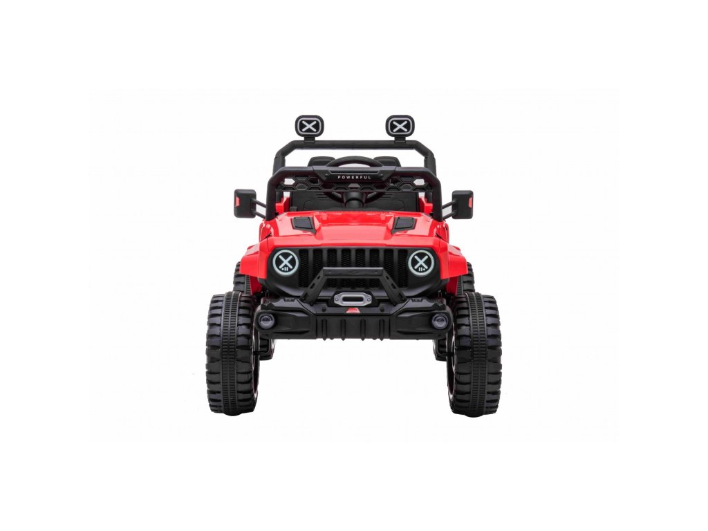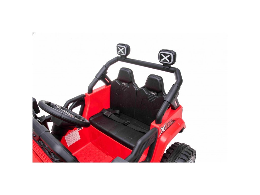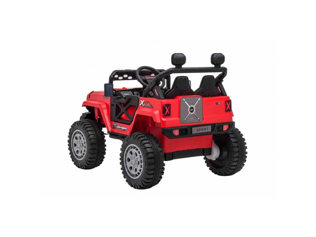Акумулаторна кола джип Off-road Speed 4x4 червен разполага с четири мотора с мощност 35W и две батерии с капацитет 12V 7Ah. Превозното средство издържа товар до 30 кг. За комфортно шофиране се грижат пенополиуретановите EVA колела. На детето ще му хареса музикалният панел с вградени мелодии, FM радио, Bluetooth, MP3 и вход за USB. Седалката е изработена от екологична кожа.