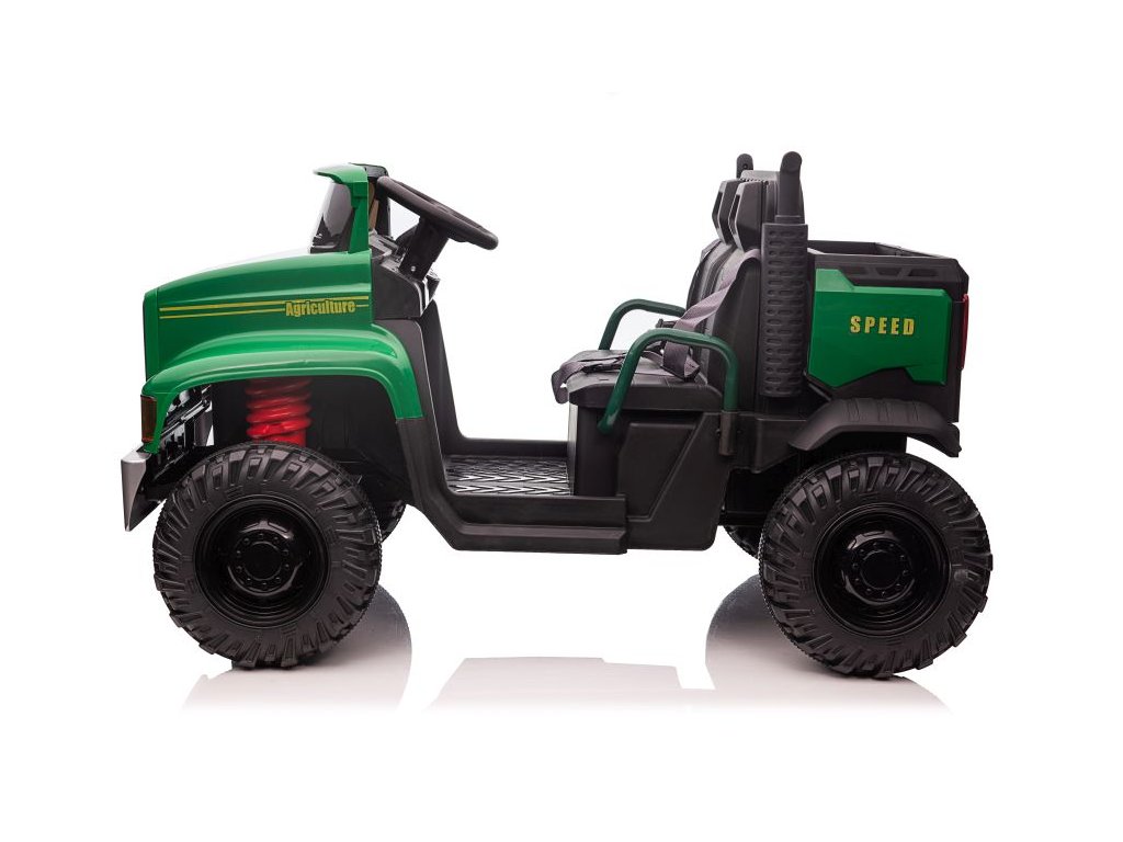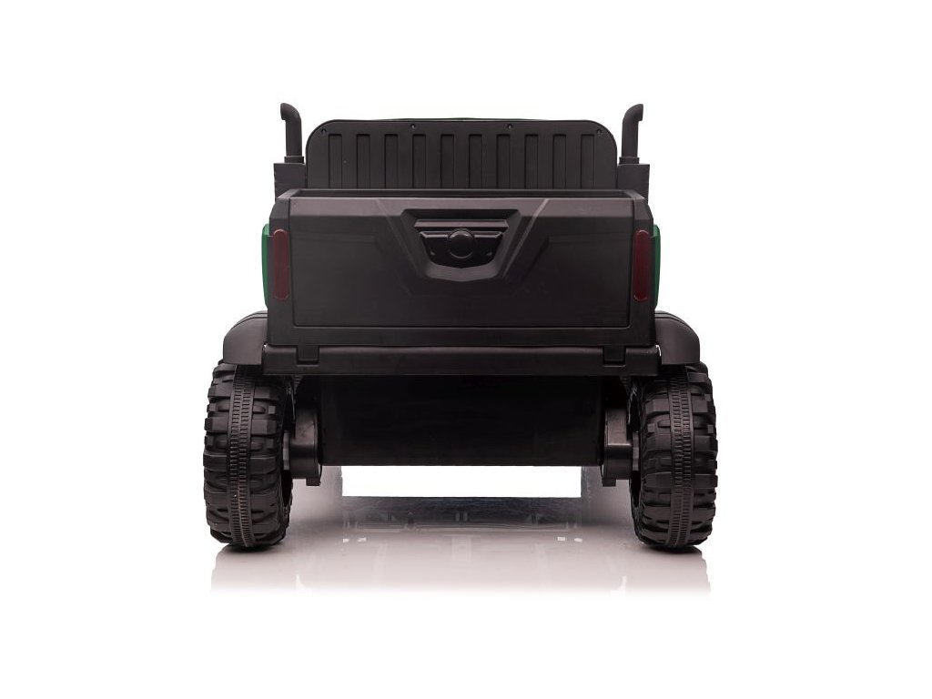 Детска акумулаторна кола Farmer 4x4 зелена пристига с безшумни EVA пяна гуми, които не смущават по време на каране. Дистанционното управление позволява движение във всички посоки. Дистанционното е оборудвано с бутон за безопасно спиране Stop, който моментално спира колата и изключва всички функции. По този начин детето може да управлява колата напълно самостоятелно, но родителите имат винаги възможност да се намесят с помощта на дистанционното управление.