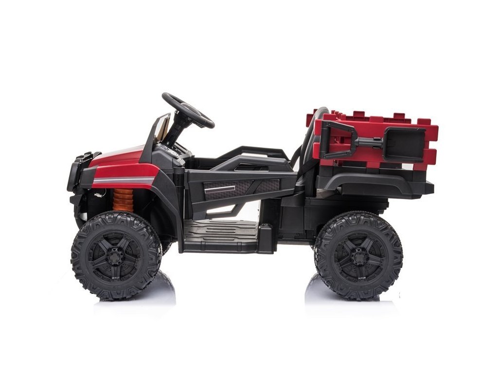 Акумулаторна кола Farmer червена идва с меки полиуретанови Eva гуми, които са безшумни и подходящи както за твърди, така и за неравни повърхности. Количката е предназначена за деца с тегло до 30 кг.