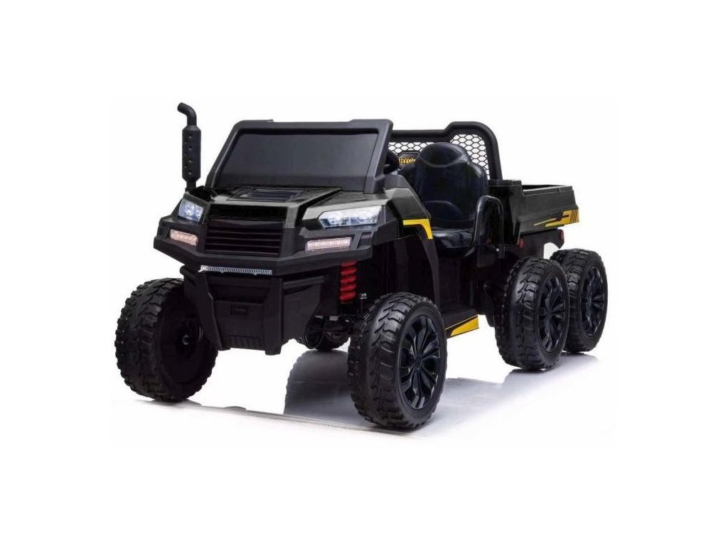 Акумулаторна кола Farmer Truck 4x200W черен разполага с четири мотора с мощност 200W всеки, което означава, че автомобилът е с двойно задвижване 4x4. За комфортно каране се грижат пяни EVA гуми и седалка, облечена с екологична кожа. На детето определено ще му хареса музикалният панел с поддръжка на MP3, USB, Bluetooth и радио. Максималното натоварване на колата е 60 кг. Предната част е оборудвана с LED светлини.
