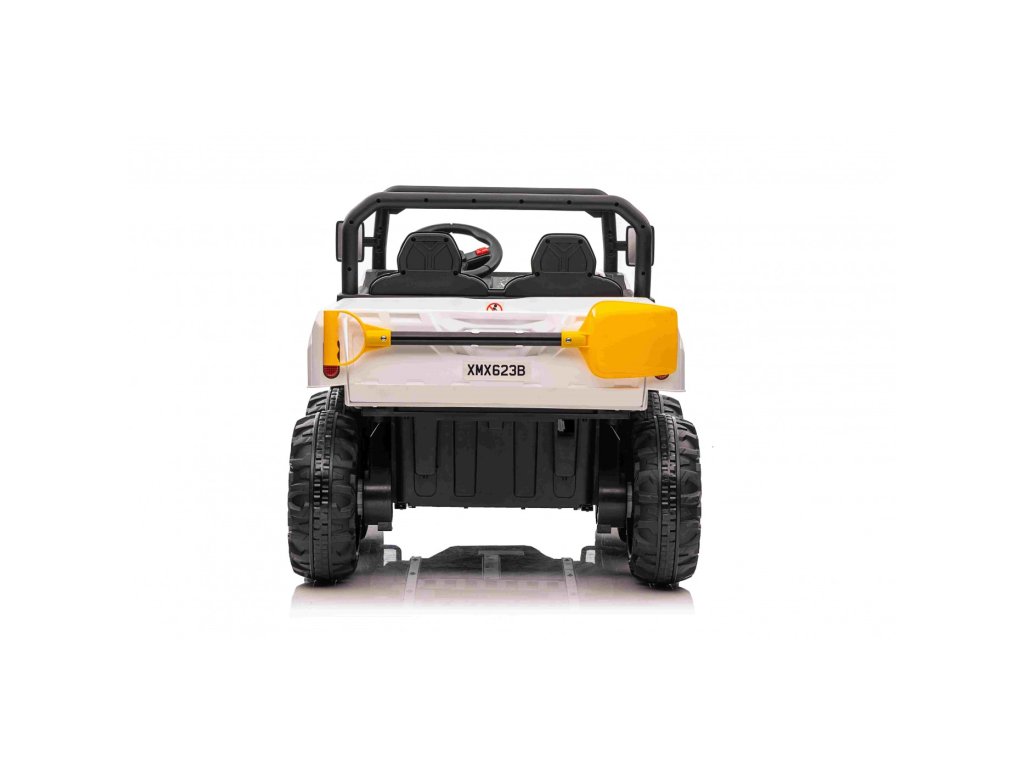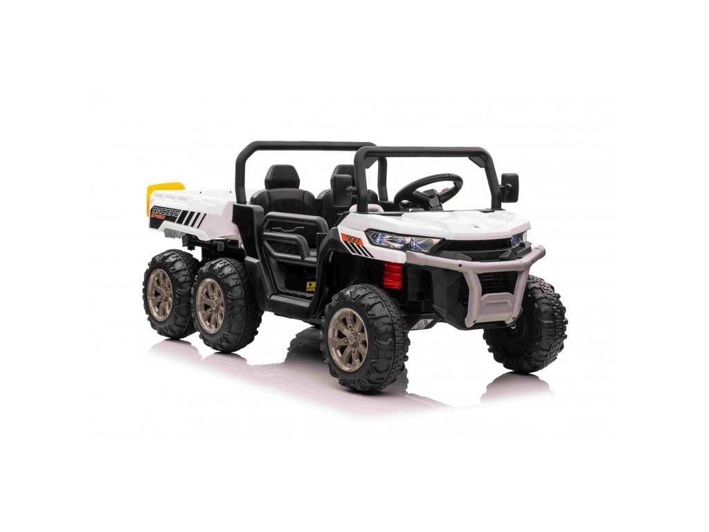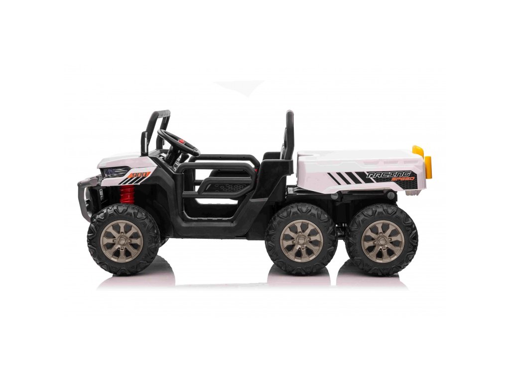 Акумулаторна кола Farmer Truck Speed 900 бяла с четири мотора с обща мощност 180W е незаменима във всяко детско гаражче. Колата се захранва от акумулатор с капацитет 12V 10Ah. Максималното натоварване на возилото е 50 кг. По време на каране детето ще се зарадва на музикалния панел с MP3, USB и Bluetooth.