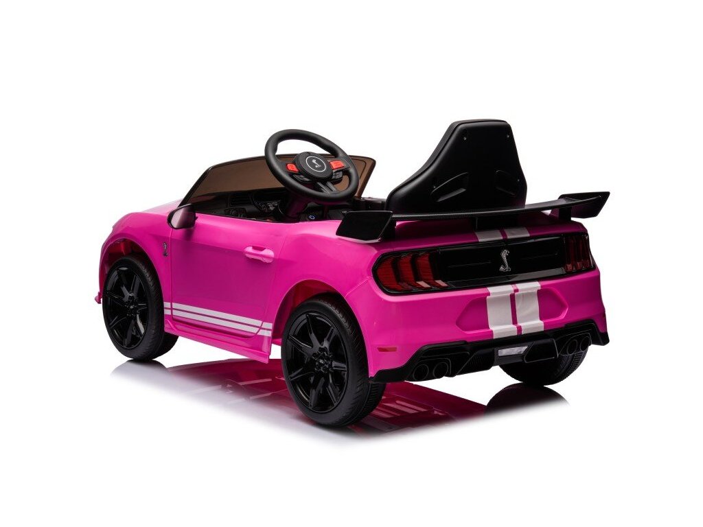 Лицензиран акумулаторен автомобил Акумулаторна кола Ford Mustang GT500 Shelby розова е задължителен аксесоар във всяко детско гаражче. Колата се захранва с акумулаторна батерия с капацитет 12V 7Ah. Максималното натоварване на превозното средство е 30 кг. По време на каране детето ще се забавлява с музикалния панел с Bluetooth, Радио и USB.