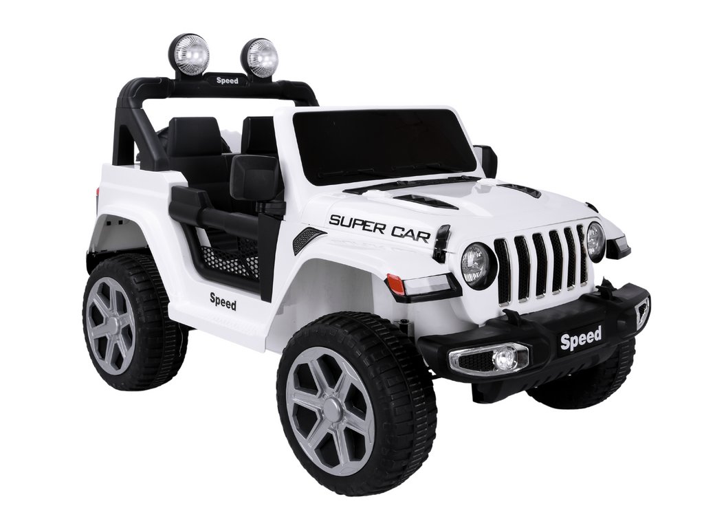 Детската акумулаторна кола FT-938 4x4 бяла е оборудвана с меки пяна EVA гуми, които осигуряват тихо и плавно движение и се адаптират към различни терени. Детето сяда удобно в ергономично оформеното седало от еко кожа, а безопасността е гарантирана чрез обезопасителни колани.