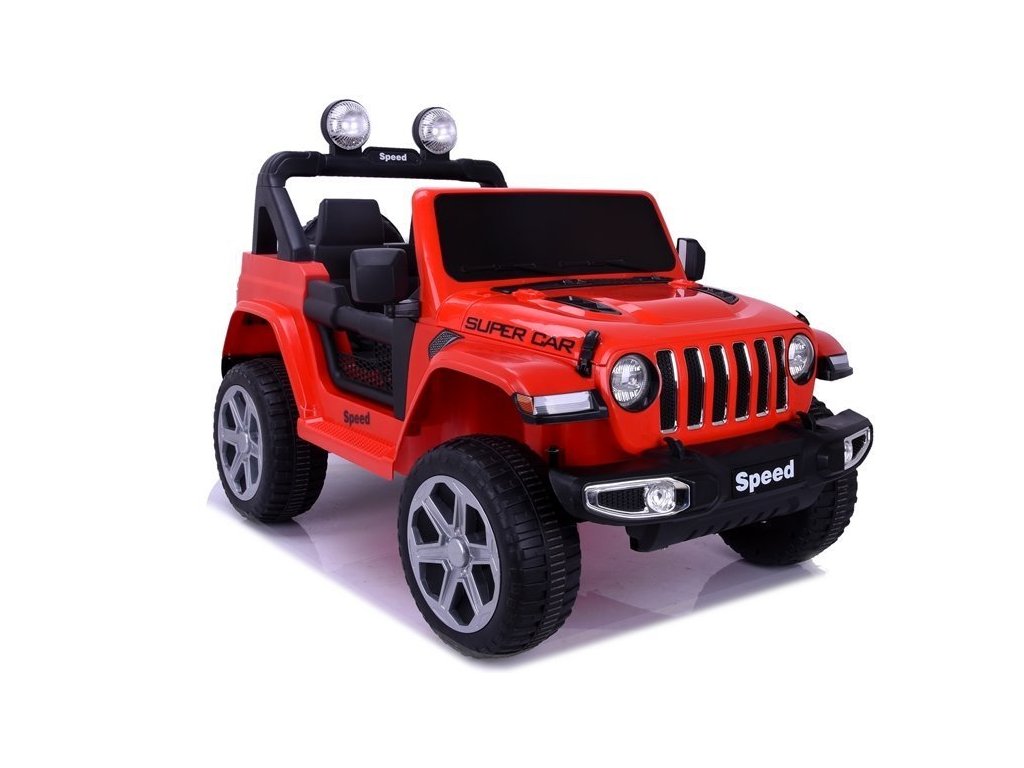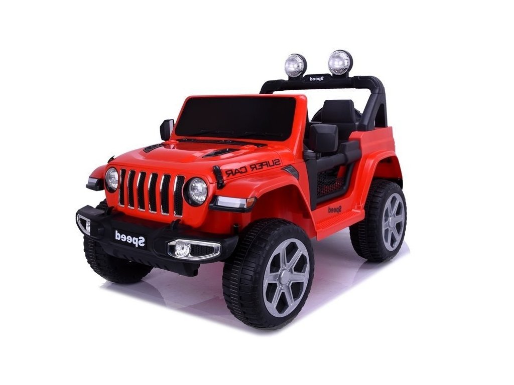 Детска акумулаторна кола FT-938 4x4 червена с меки пяна EVA гуми, които осигуряват тиха работа и адаптация към различни терени. Детето сяда удобно в ергономично оформено седало от еко кожа, а за сигурността се грижат предпазни колани.