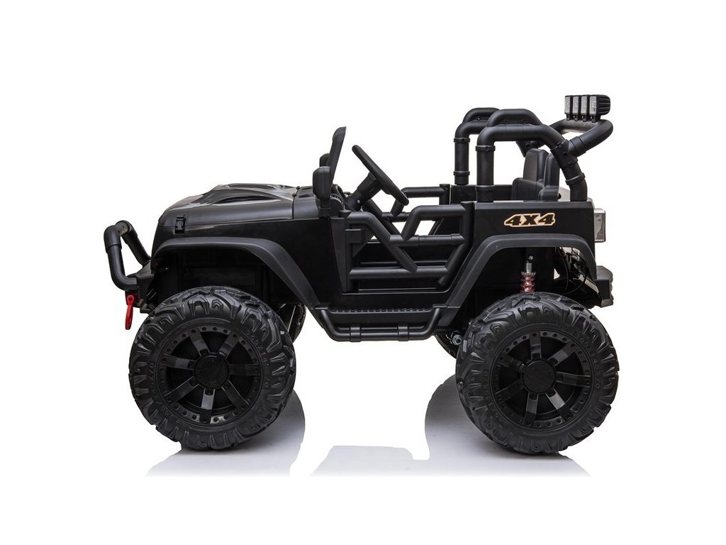 Кола-джип разполага с мощен мотор, както подобава на офроуд автомобил. Не сме пропуснали и звук и светещи ефекти. Меки EVA EVA пяна гуми са по-добри от пластмасовите – тихи са и се адаптират към различни терени. Колата е оборудвана с MP3 панел и може да се свърже чрез Bluetooth с други устройства, разполага и със слот за SD карта и USB вход. Jeep-ът има фронтални и задни LED фарове.