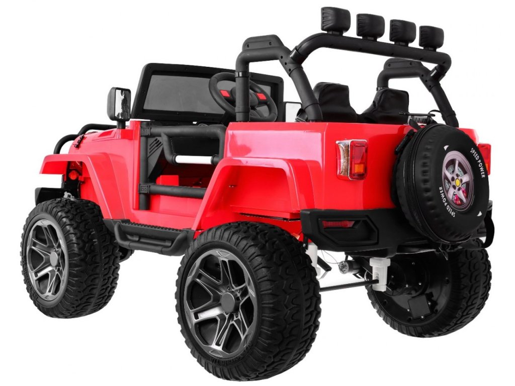 Акумулаторна кола Jeep Monster 4x4 червена е перфектният начин да запознаете децата с удоволствието от карането. Освен това е отличен аксесоар за семейни разходки или забавление в градината. Колата е изключително надеждна и безопасна. За сигурността се грижи автоматична спирачка, която се активира при отпускане на педала за газ. Не липсват безопасни колани и разбира се дистанционно управление за родителите.