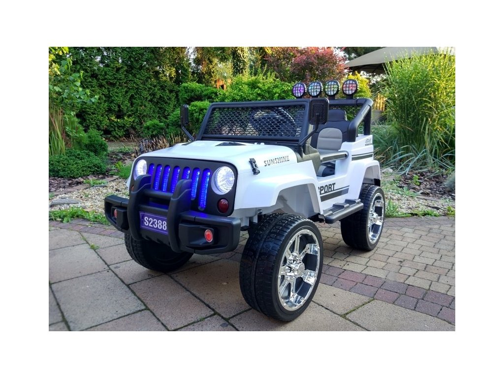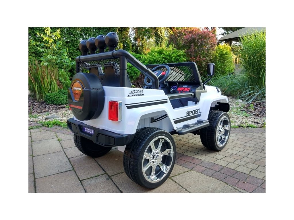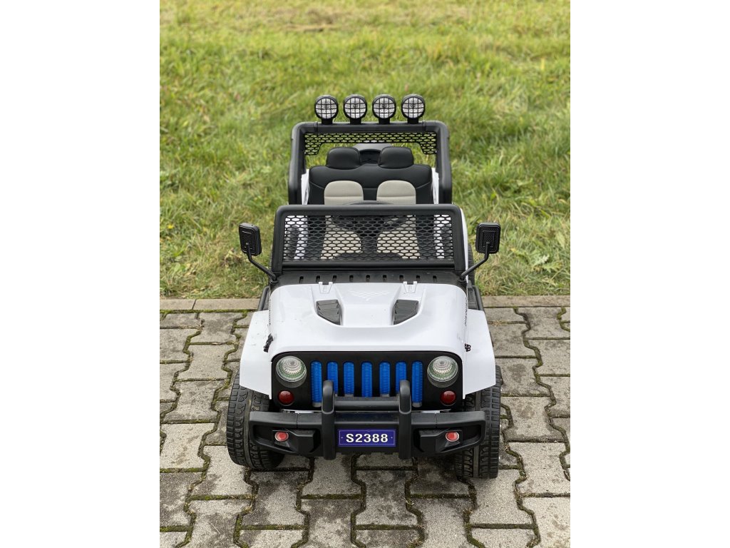 Акумулаторната кола Jeep Raptor 4x4 лесно преодолява неравни, утъпкани и неутъпкани терени и лек наклон, благодарение на пянообразните Eva гуми. Освен това автомобилчето разполага с LED осветление, обезопасителни колани, странични огледала и звук на клаксон. Колата Jeep Raptor може да се свърже с устройство чрез Bluetooth. Можете да слушате любимо радио FM честота.