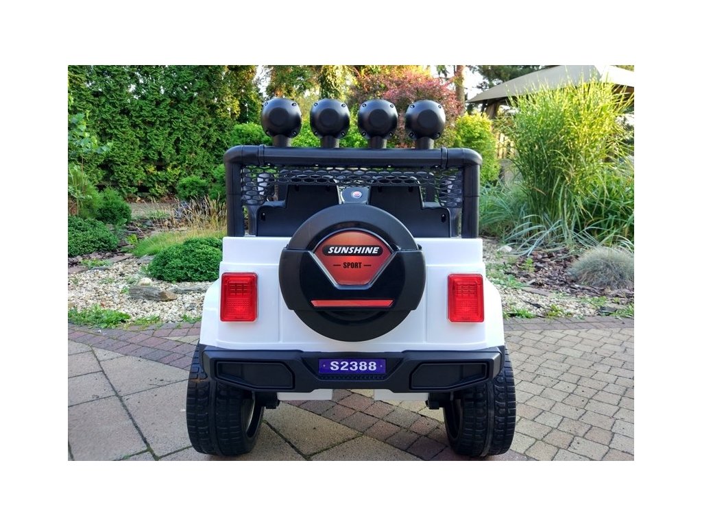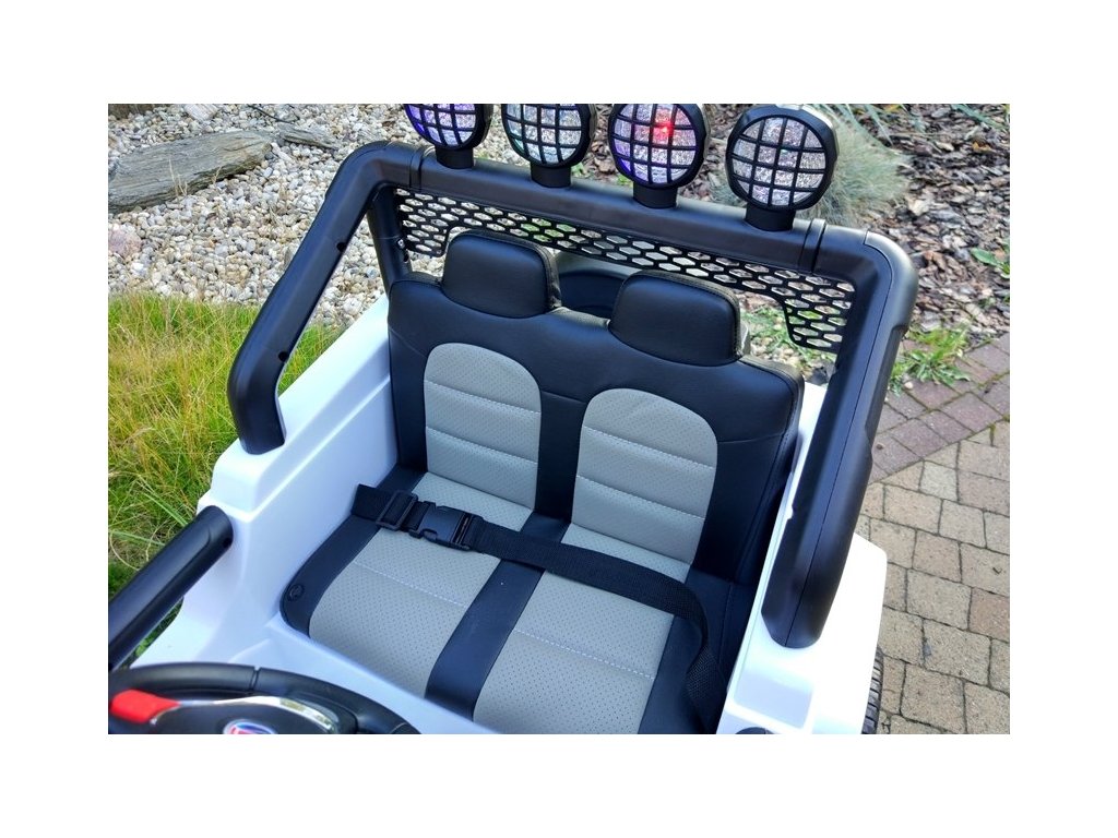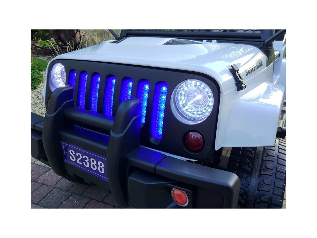 Акумулаторна кола Jeep Raptor 4x4 бяла може да се движи напред и назад с 3 скорости, с 3 предни и 3 задни скорости, както и надясно и наляво. Кола играчката е оборудвана с дистанционно управление 2,4 GHz, чрез което можете да управлявате посоката и безопасността на движението на вашето дете. Сред функциите на дистанционното управление е включен и бутон за спиране за безопасност, който позволява на родителя да спре колата по всяко време и да изключи всички функции на играчката.