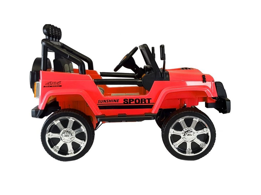 Акумулаторна кола Jeep Raptor 4x4 червена може да се движи напред и назад с 3 скорости, с 3 степени напред и 3 назад, както и да завива надясно и наляво. Колата разполага с безжично дистанционно управление 2,4 GHz, с което родителите могат да контролират посоката на движение и безопасността при шофиране на детето. Сред функциите на дистанционното управление е включен и бутон за спиране на движението (Stop), благодарение на който родителят може по всяко време да спре колата и да изключи всички функции.