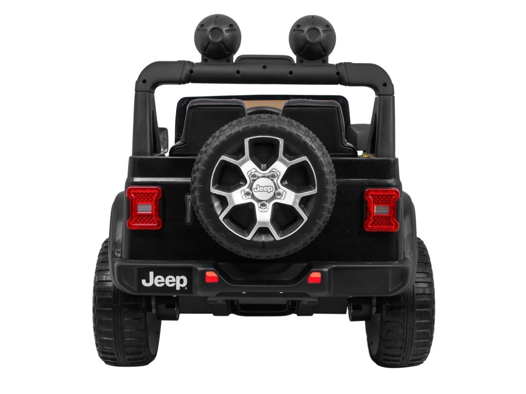 Детска акумулаторна кола Jeep Wrangler Rubicon 4x4 черна с иновативно дистанционно управление, предназначено за родители. Акумулаторната кола Jeep разполага с изключително удобна седалка и обезопасителен колан за сигурността на детето. Колата е снабдена с табло, волан, предни светлини с LED осветление и музикален панел. Акумулаторната кола може да се управлява по два начина – чрез дистанционното управление, което позволява на родителя да избира посоката и скоростта, или детето да шофира колата самостоятелно. Jeep е оборудвана с 4 мотора по 45W всеки, осигуряващи задвижване на всички 4 колела! Амортисьорите и меките EVA гуми гарантират плавно и комфортно возене без вибрации. Jeep Wrangler Rubicon 4x4 черна е перфектен избор за всеки малък почитател на големите автомобили!