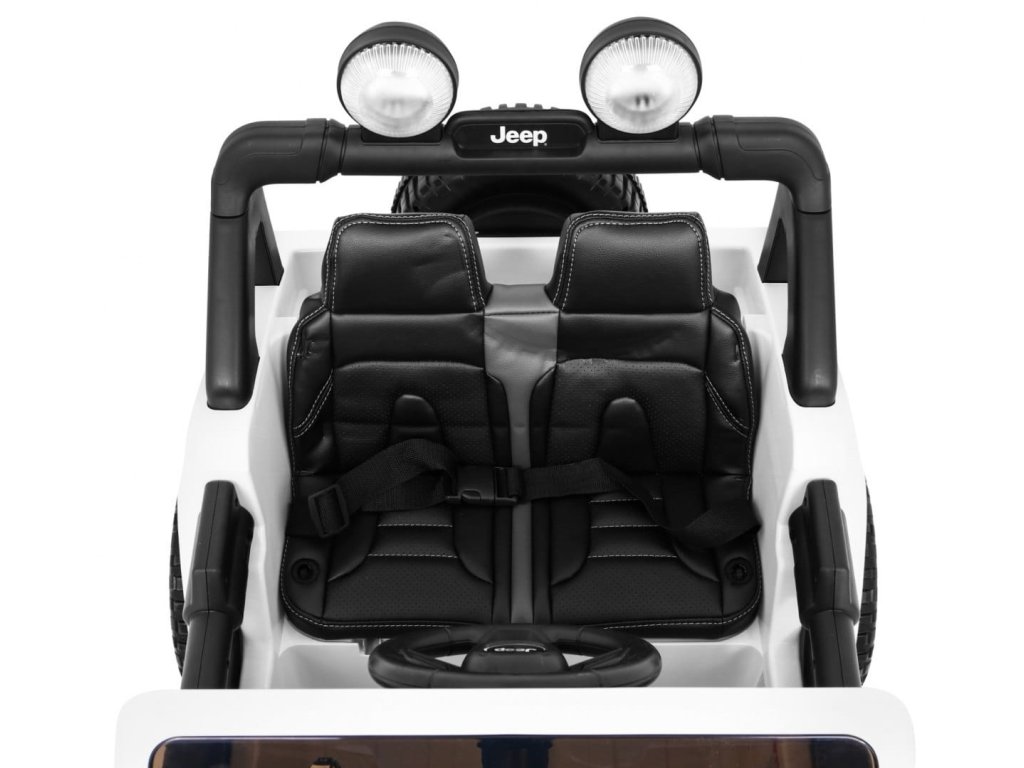 За още по-голямо удоволствие от карането в колата е вграден аудио панел с FM радио, Bluetooth, AUX, SD и USB входове. Акумулаторната кола е оборудвана с LED светлини отпред и отзад. Jeep Wrangler Rubicon се стартира с метални ключове. За комфорта на водача се грижи удобно оформеното седалка от еко кожа и меки пяни Eva гуми, които са тихи и адаптирани както към твърд терен, така и към по-неравни повърхности.