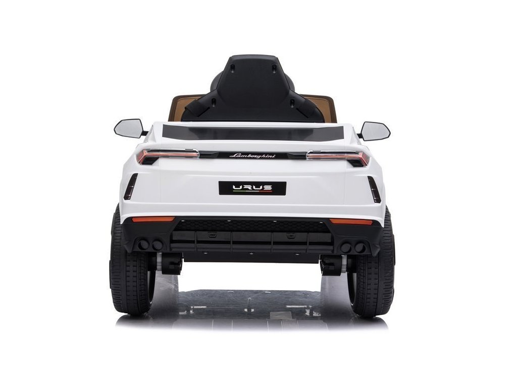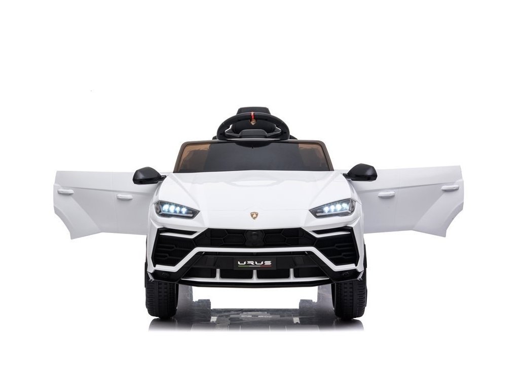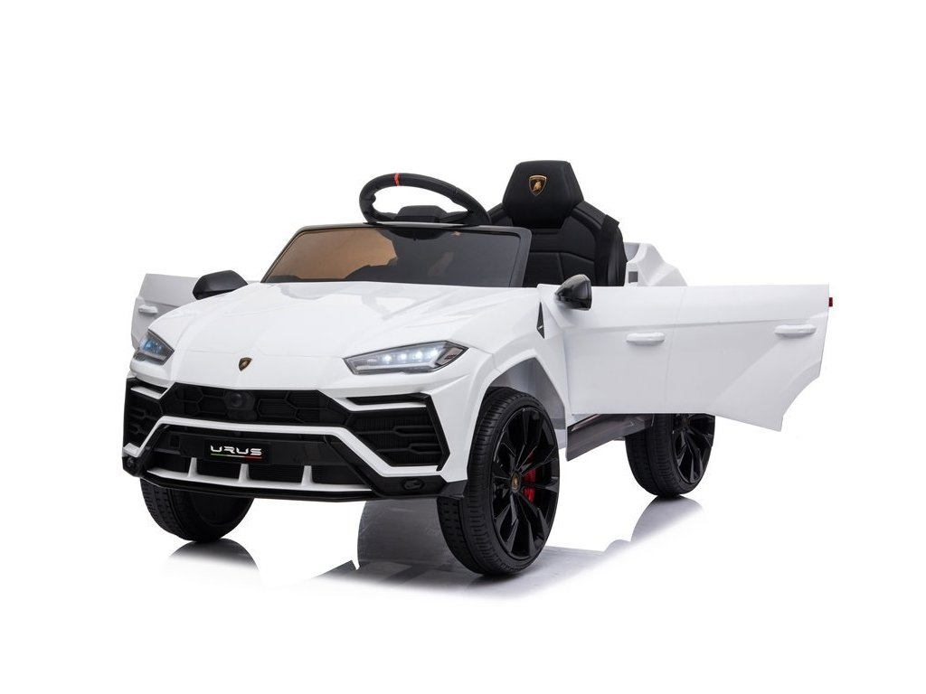 Акумулаторна кола Lamborghini Urus бяла разполага с два двигателя с мощност 45W, което означава, че колата е с задвижване 2x2. За комфортно каране се грижат пянните EVA гуми и седалката от екологична кожа. На детето със сигурност ще му хареса музикалният панел с входове за MP3, USB и FM радио. Товароносимостта на колата е 30 кг. Освен това моделът е оборудван с предно LED осветление и отварящи се врати.