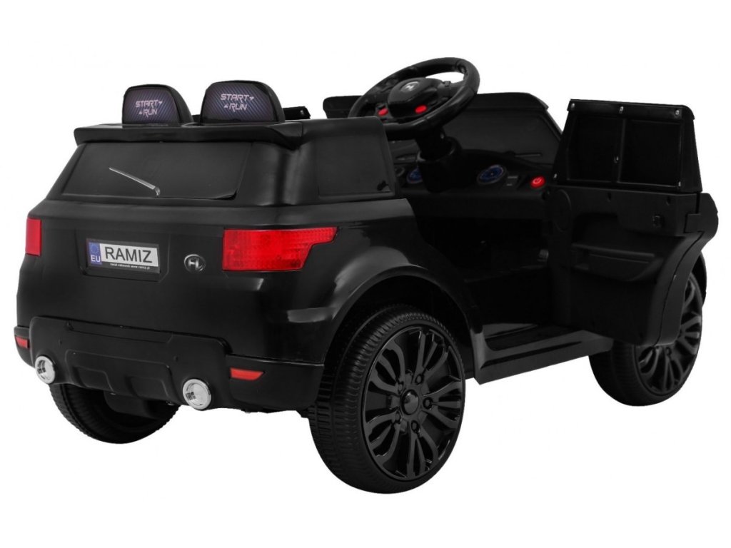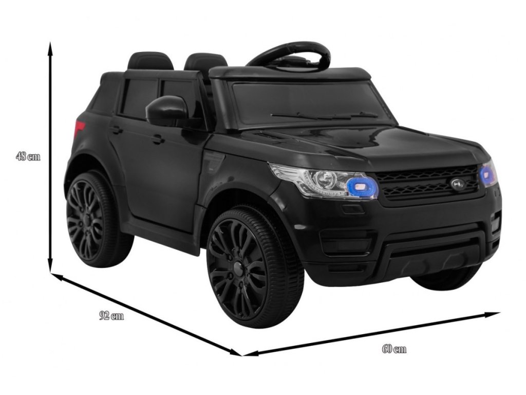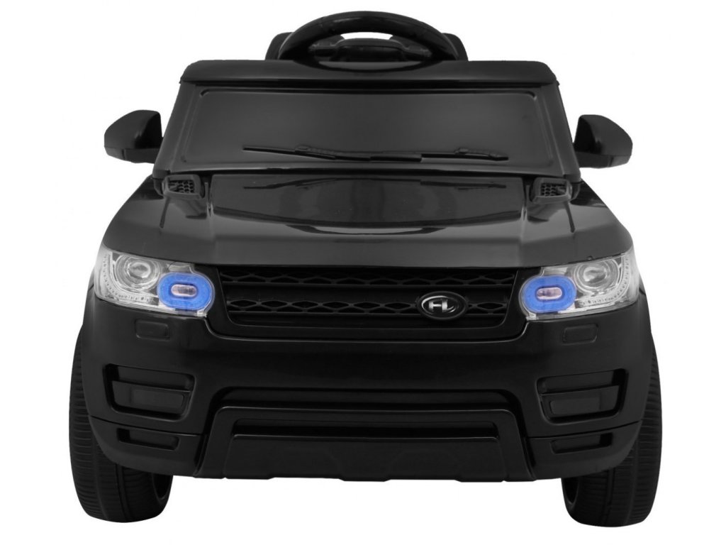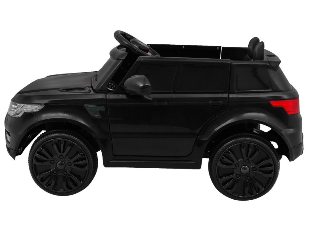 Акумулаторна кола Land Rapid Racer черна ПОСТРАДАЛА ОПАКОВКА лесно се справя с неравен, утъпкан или неутъпкан терен и лек наклон до 10%. Освен това количката има предни и задни LED светлини, обезопасителни колани, странични огледала и звуци от волана и клаксона. Към количката може да се включи Mini Jack кабел, включен в комплекта, за слушане на MP3 файлове. Също така има и USB вход.