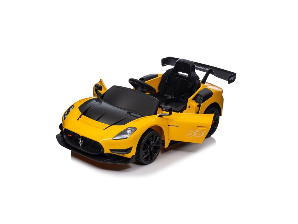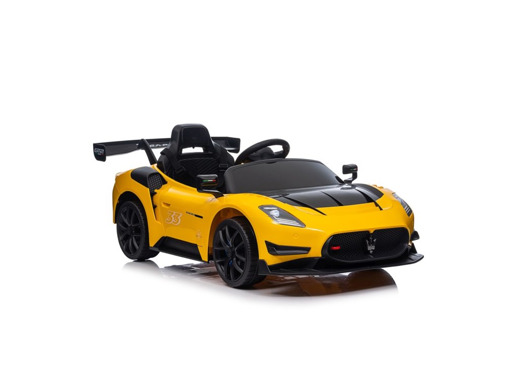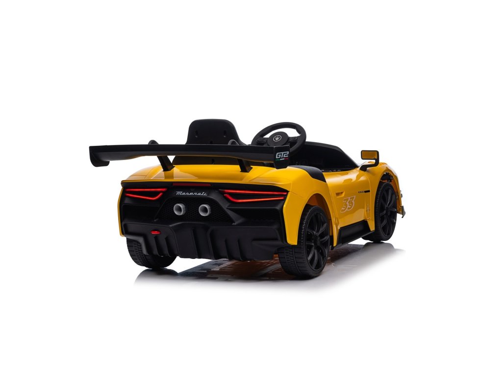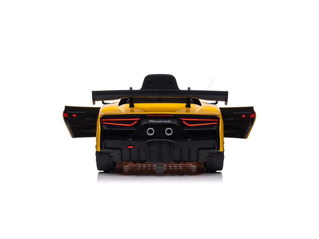 Детска лицензирана кола Акумулаторна кола Maserati MC20 GT2 4x4 жълта с богато оборудване и иновативен дизайн. Интериорът на колата е оборудван със седалка със предпазни колани, музикален панел с Bluetooth, радио, входове AUX, MP3, USB и бутони с мелодии. За по-добра видимост на пътя са добавени предни и задни LED светлини.