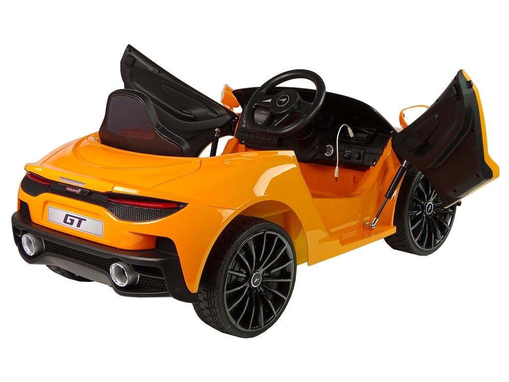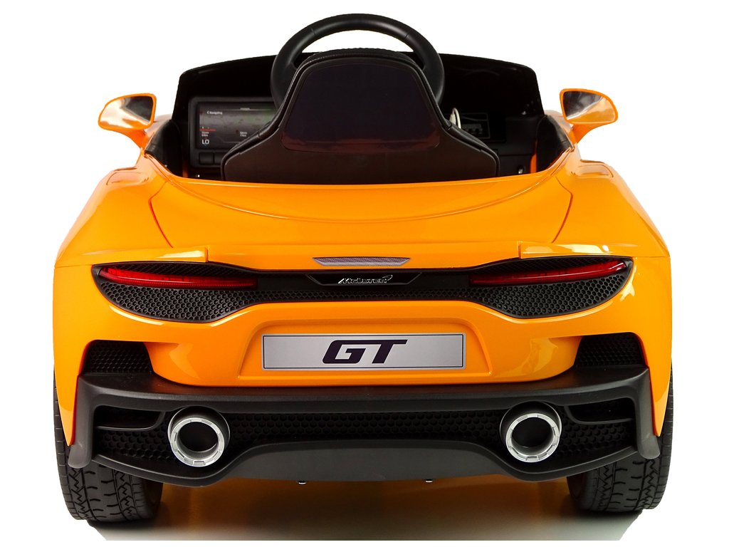 Акумулаторна кола McLaren GT, оранжево лаково покритие е оборудвана с два мотора с мощност 45W и батерия с капацитет 12V 10Ah. За комфортно каране се грижат пянните EVA гуми и седалка, облечена в еко кожа. На малките любители осигурява допълнително удоволствие музикалният панел с MP3, USB, Bluetooth и радиоприемник. Товароносимостта на колата е до 30 кг. Автомобилът разполага с предно и задно LED осветление и отварящи се врати.