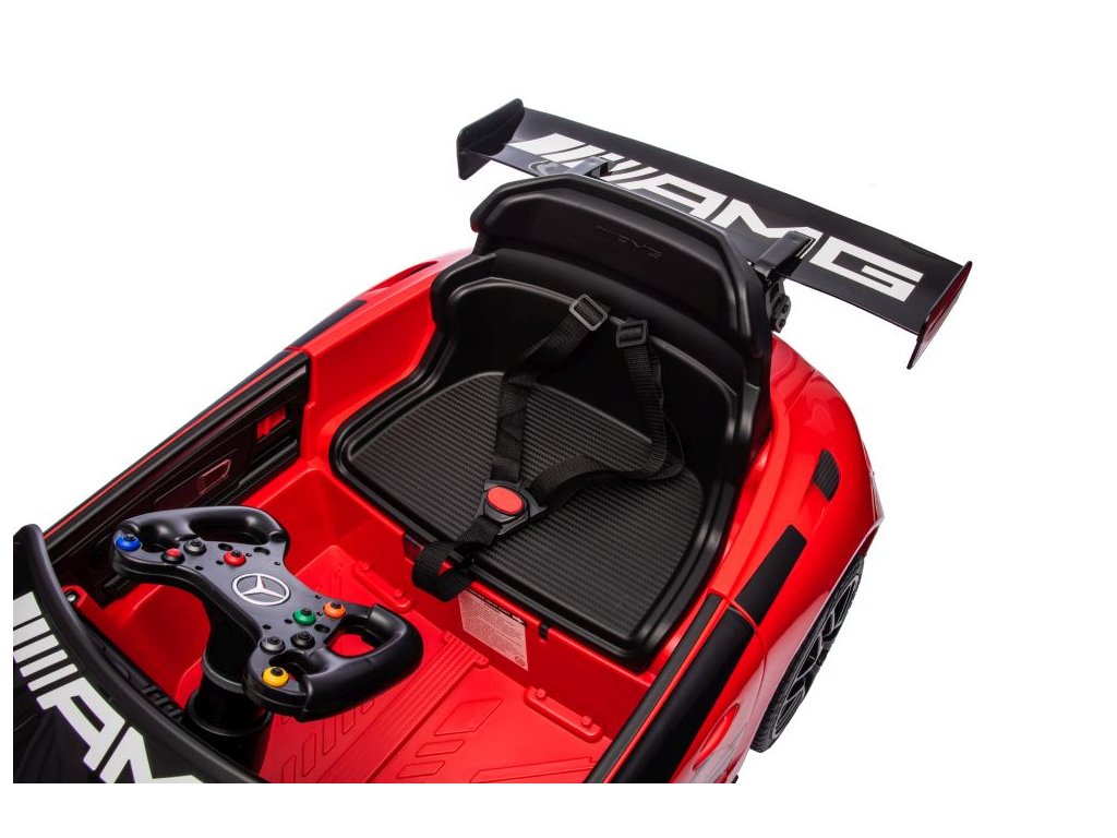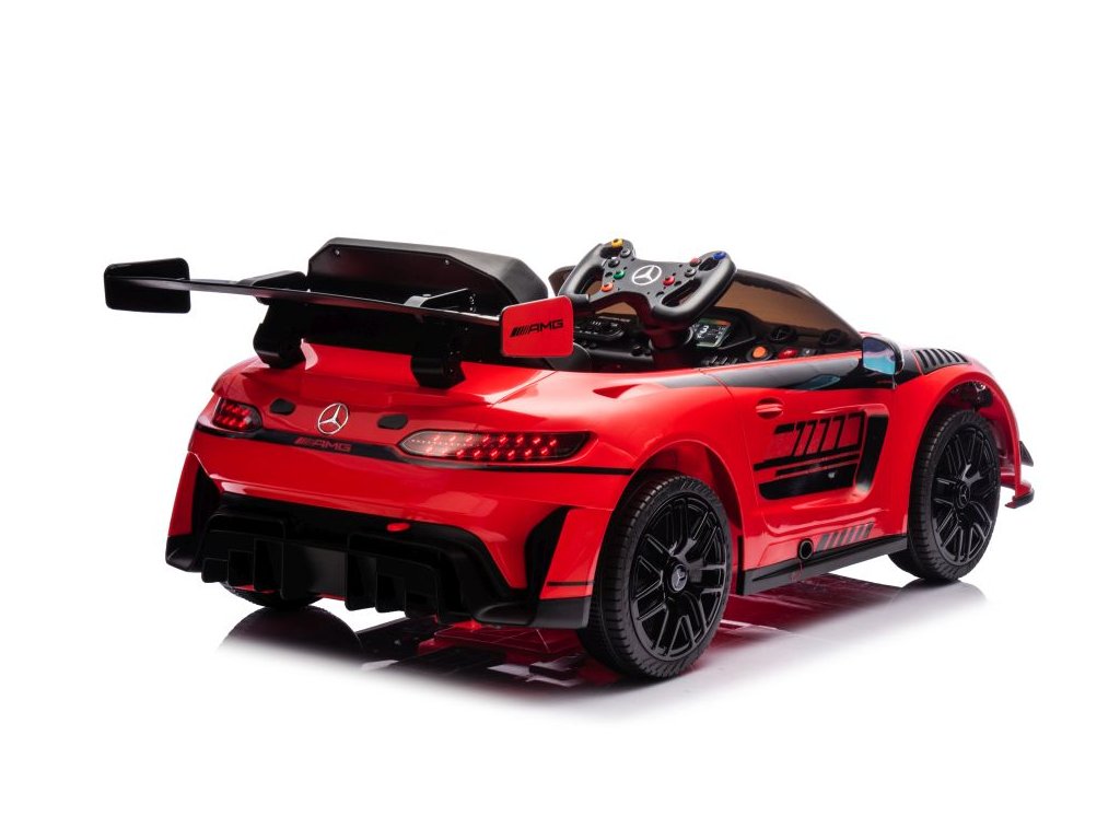 Акумулаторна кола Mercedes AMG GT3 червена е незаменим аксесоар във всяко детско гаражче. Колата се задвижва от батерия с капацитет 12V 4,5Ah. Сред оборудването ѝ са седалка, тапицирана с еко кожа, пеноподобни EVA джанти и предно и задно LED осветление. Максималното натоварване на превозното средство е 30 кг. По време на каране детето ще бъде забавлявано от музикалния панел с Bluetooth.