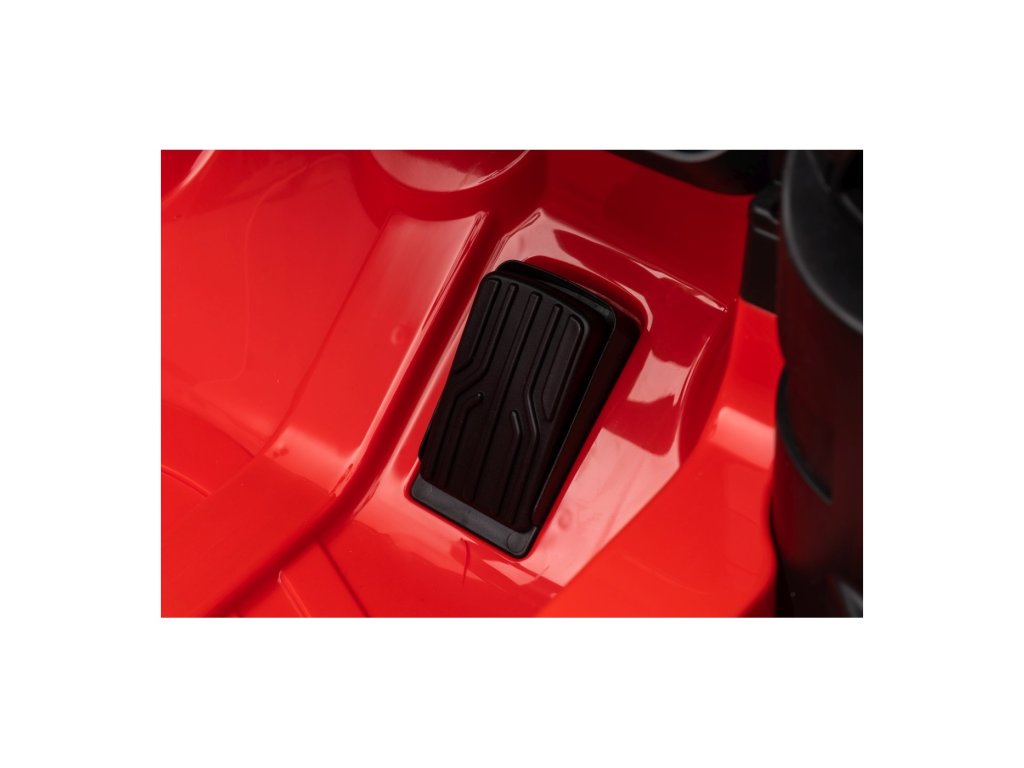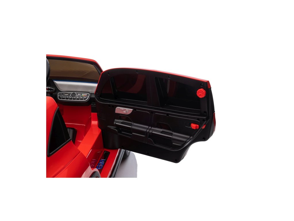 Колата е оборудвана с седалка, тапицирана с еко кожа и предпазен колан, както и с отварящи се врати за лесно качване и слизане. LED осветление отпред и отзад, звук на мотор при стартиране и допълнителни звукови ефекти създават реалистично усещане при каране. Мултимедийният панел предлага връзка чрез Bluetooth, AUX, USB и възпроизвеждане на MP3, както и контролни бутони на волана.