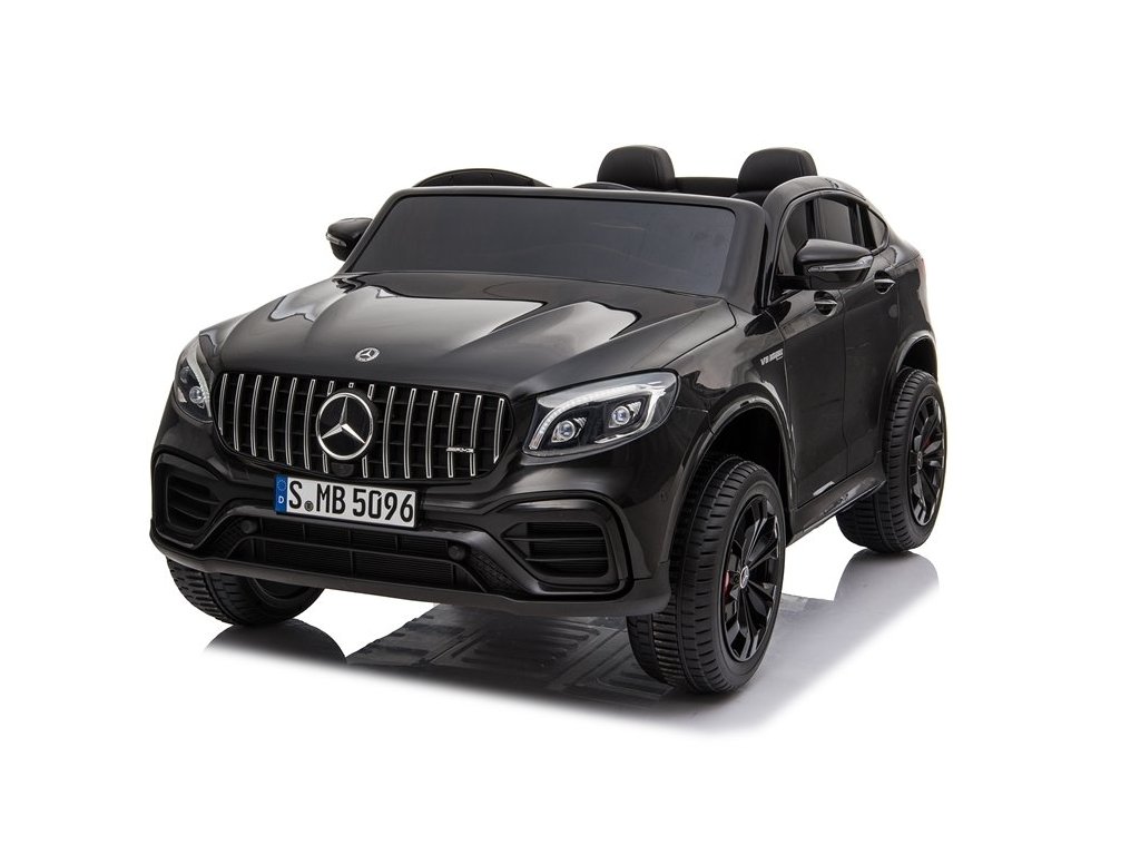 Детска акумулаторна кола Mercedes-Benz GLC 63S 4x4 LCD двуместна лакирана черна е оборудвана с гуми от пяна EVA, които осигуряват отлично сцепление и позволяват каране дори по неравни терени. Моделът е задвижван от четири мощни електрически мотора с мощност по 45W всеки.