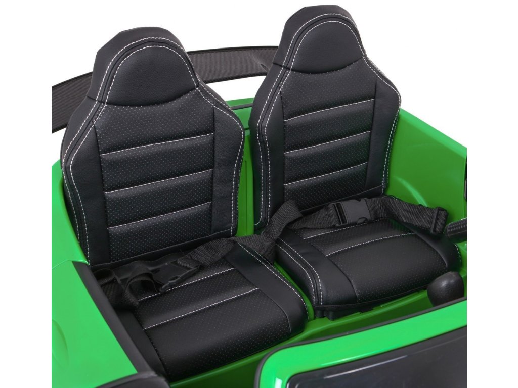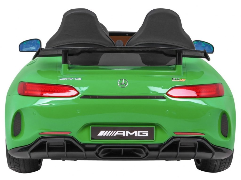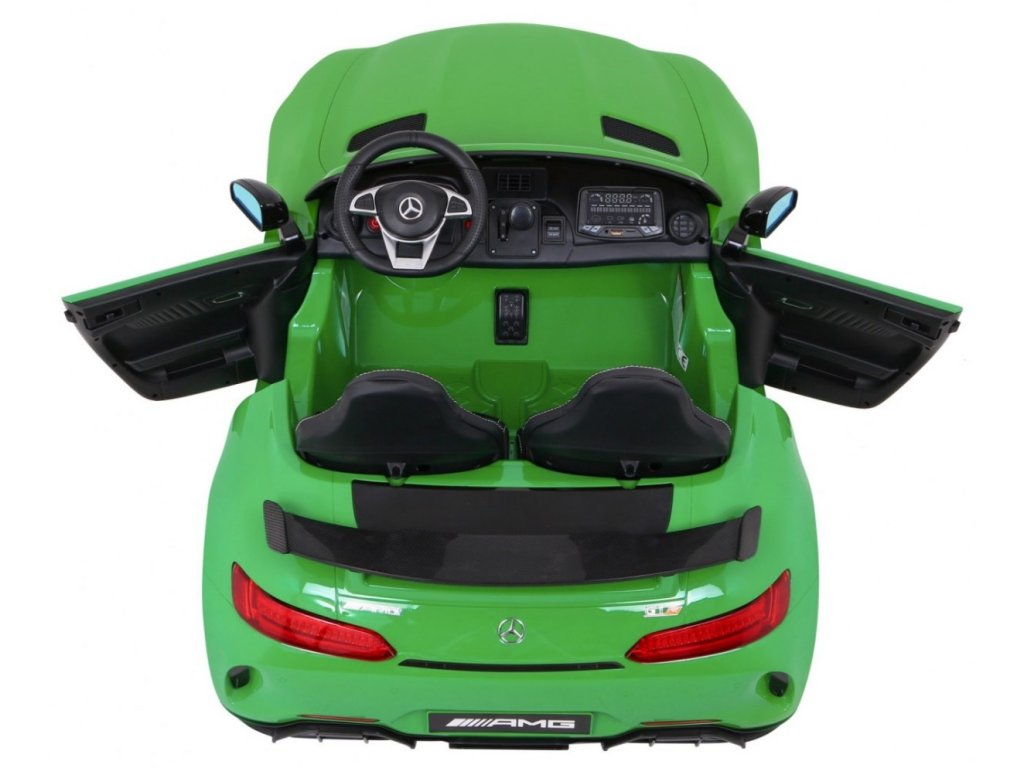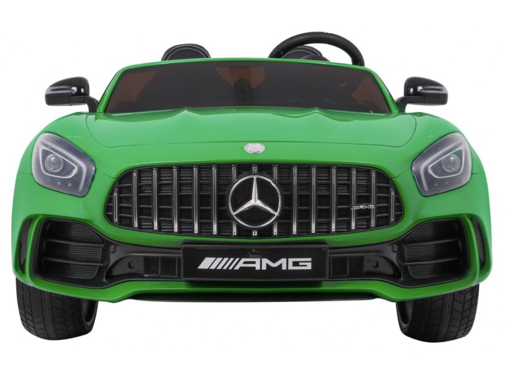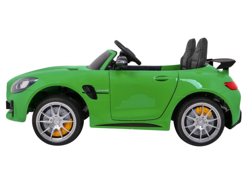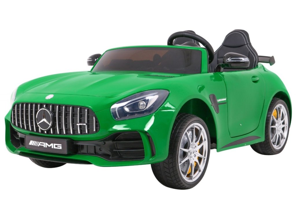 Акумулаторна кола Mercedes-Benz GT R 4x4 зелена лакирана пристига с меки пяна Eva гуми и мощен електрически мотор. Лесно преодолява неравности и наклони благодарение на задвижването на всички четири колела. Максималното натоварване е до 30 кг.
