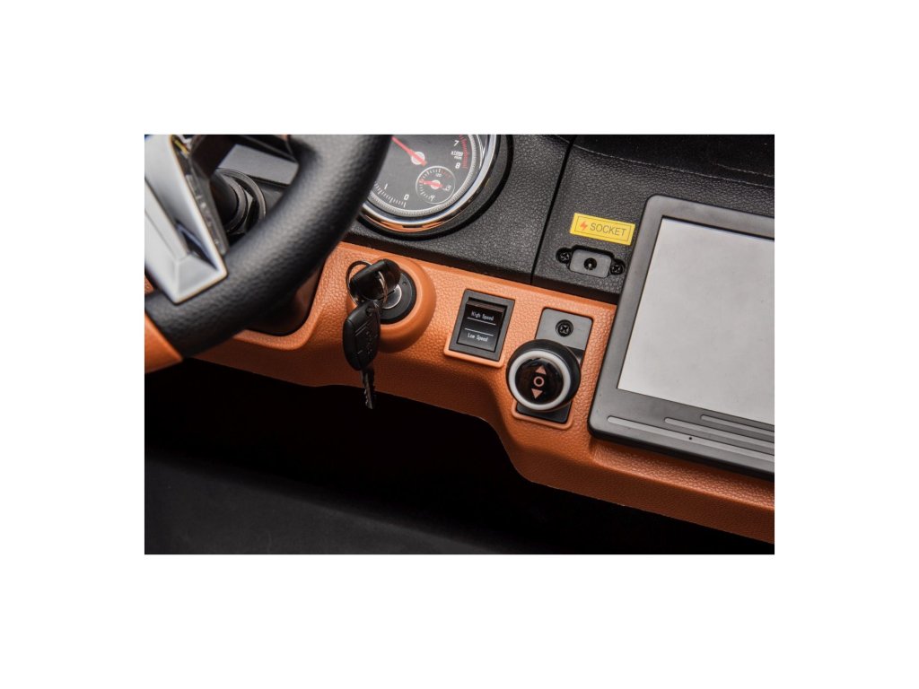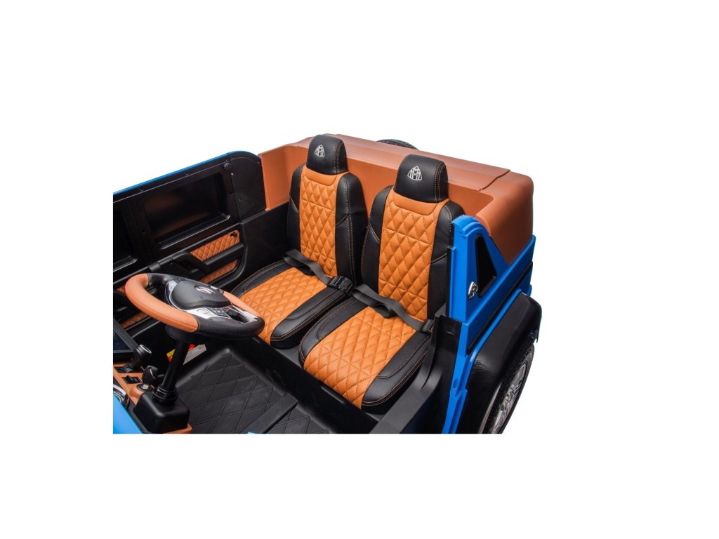 Превозното средство е оборудвано с двойна седалка, облечена в еко кожа, обезопасителни колани и триредово регулиране на разстоянието между седалките, което осигурява достатъчно пространство за две деца. Отваряни врати и голям багажник повишават функционалността на автомобила и правят ежедневните приключения още по-приятни.