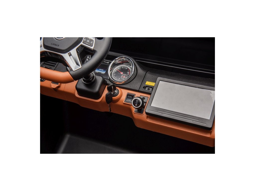 В комплекта е включен MP4 тъчскрийн панел с интерфейс на пет езика (полски, английски, немски, френски, испански), Bluetooth, FM радио, USB, SD и AUX входове, както и предварително инсталирани приказки и мелодии. Звуковите ефекти се допълват от клаксона и реалистичния звук на стартиращ мотор. За безопасност и стил се грижат LED светлини – предни, задни, за задна и спирачна светлина – които могат да се управляват с отделен превключвател.