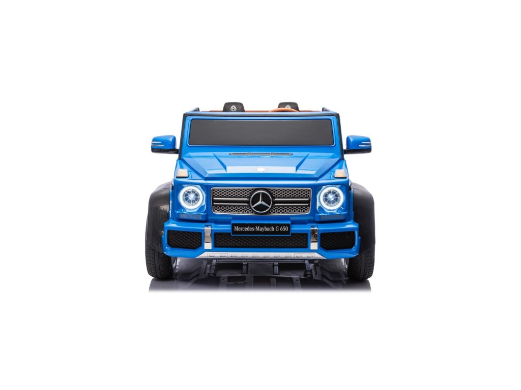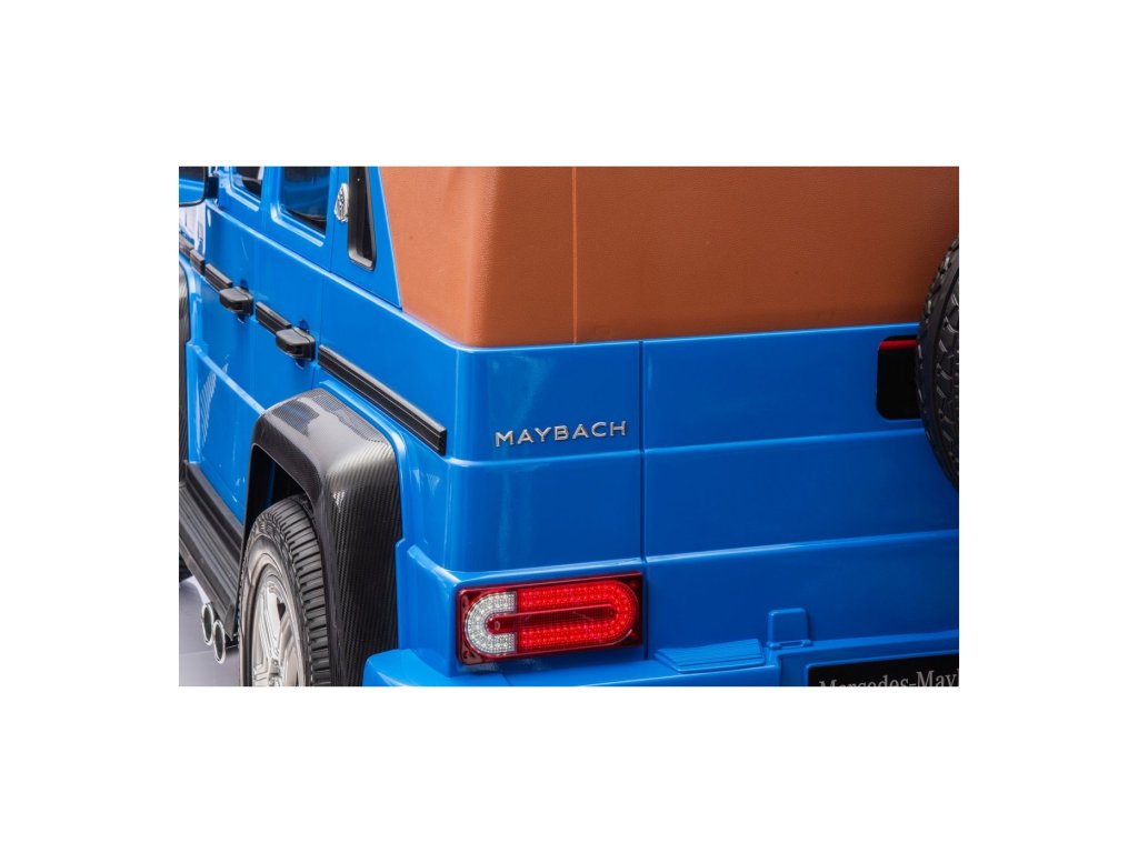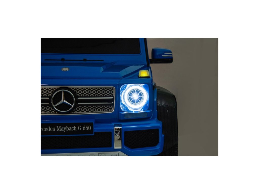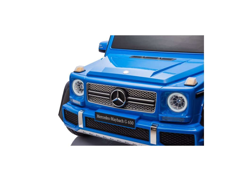Акумулаторна кола Mercedes Benz MAYBACH G650 Strong MP4 синя е висококачествено електрическо детско автомобилче, което съчетава лукс, мощност и най-съвременни технологии. Този здрав модел с безчетков двигател с мощност 200W и силна 24V 14Ah батерия се справя лесно и с по-труден терен. Благодарение на надуваемите гуми, предни и задни амортисьори и високо окачване, той е готов за каране във всякаква среда.