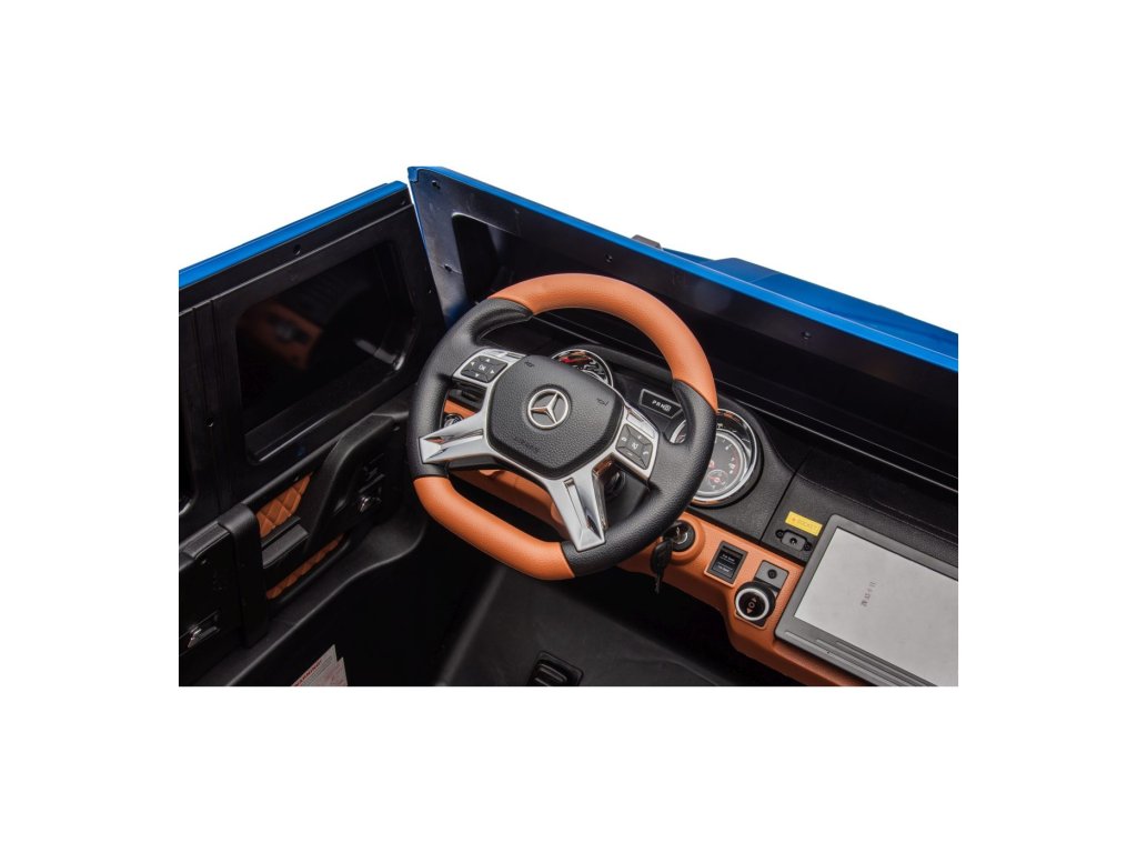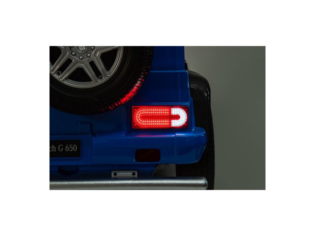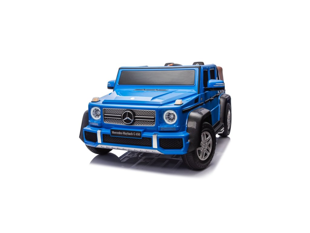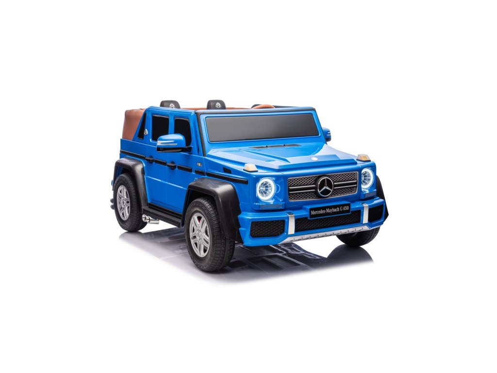 Акумулаторна кола Mercedes Benz MAYBACH G650 Strong MP4 синя е висококачествено електрическо детско автомобилче, което съчетава лукс, мощност и най-съвременни технологии. Този здрав модел с безчетков двигател с мощност 200W и силна 24V 14Ah батерия се справя лесно и с по-труден терен. Благодарение на надуваемите гуми, предни и задни амортисьори и високо окачване, той е готов за каране във всякаква среда.