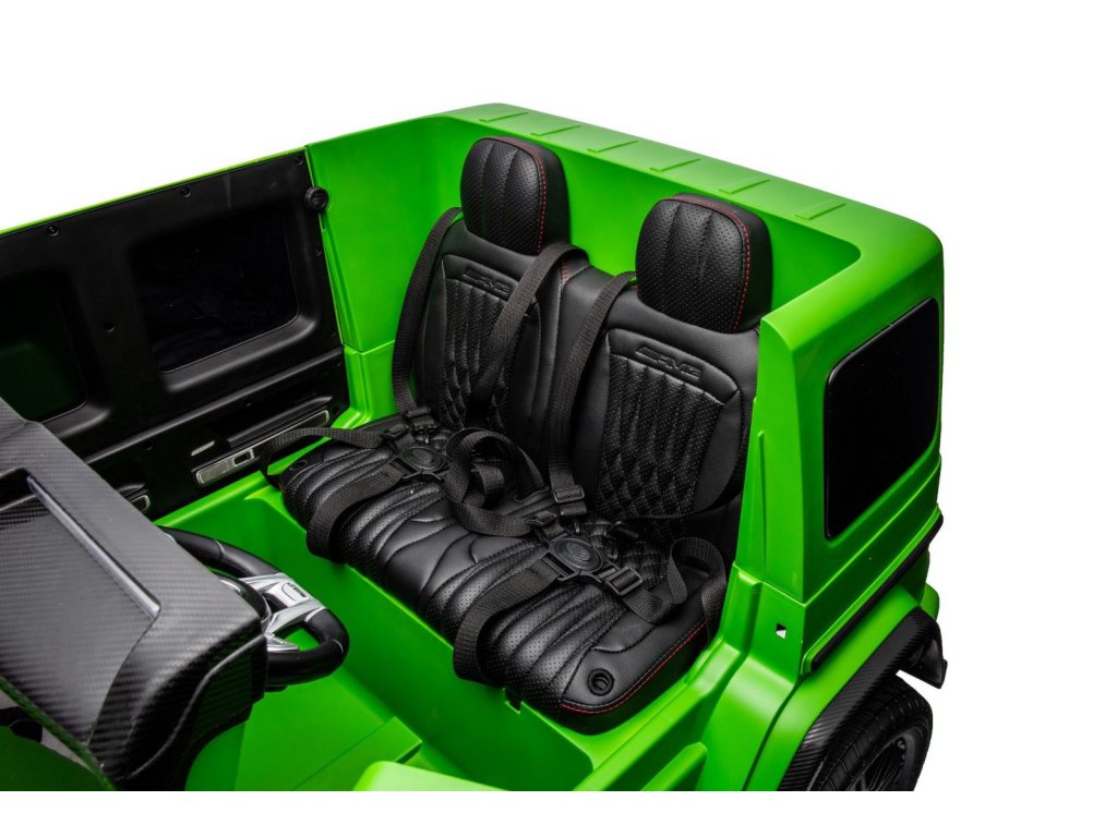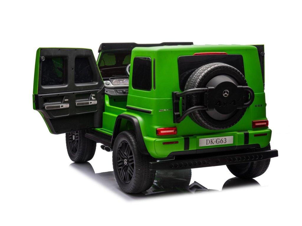 Представяме ви Акумулаторна кола Mercedes G63 AMG 2x24V 4x200W XXL лакирана зелена – луксозно електрическо детско возило, което съчетава стил, мощ и безопасност. Това возило е перфектният забавен аксесоар за вашите малки шофьори, предоставяйки незабравими преживявания и часове забавление.