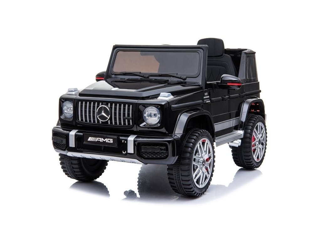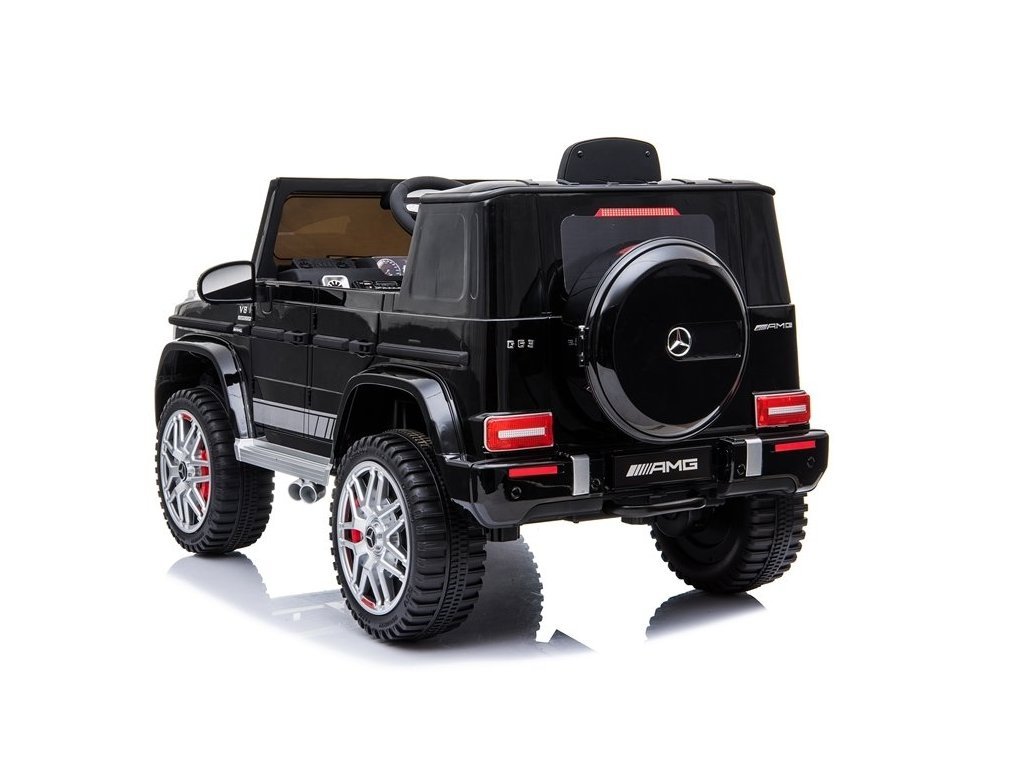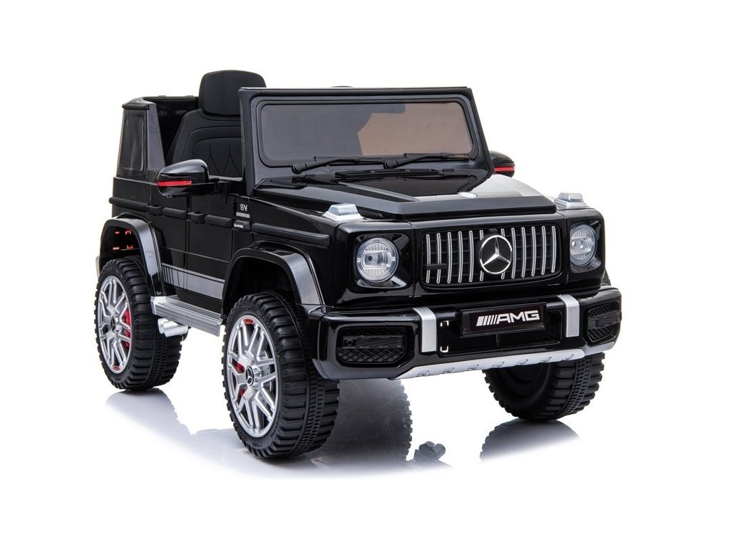 Черният, лакиран Mercedes G63 AMG лъскаво черно е истинско съчетание от надеждност, първокласно качество и военен дизайн. Този автомобил ще се справи както при ежедневни разходки в двора, така и при уикенд екскурзии извън града. Два мотора по 45W под капака, съчетани с 12V4.5Ah акумулаторна батерия, позволяват скорост от 3 до 5 км/ч, което със сигурност ще впечатли не само малкия водач, но и околните.