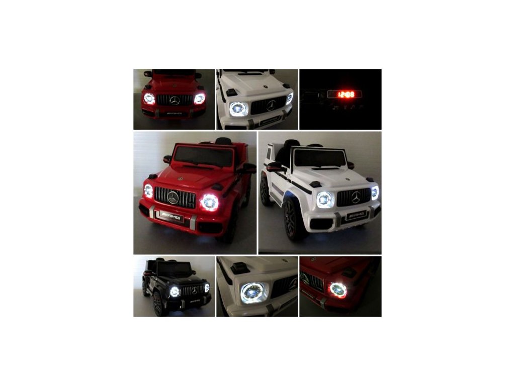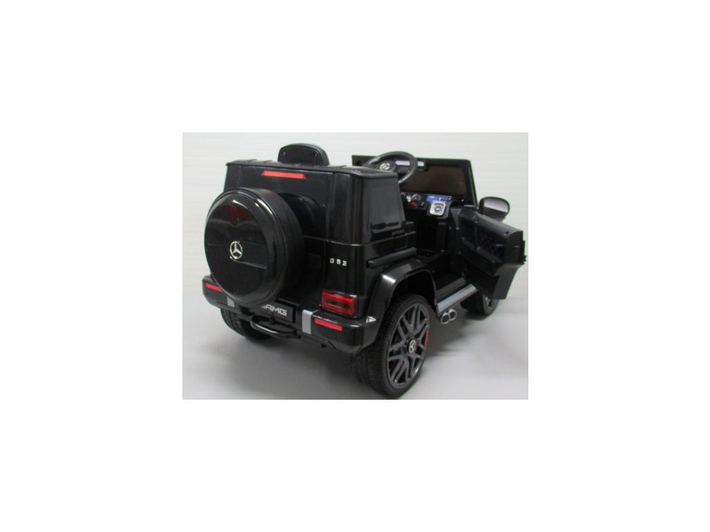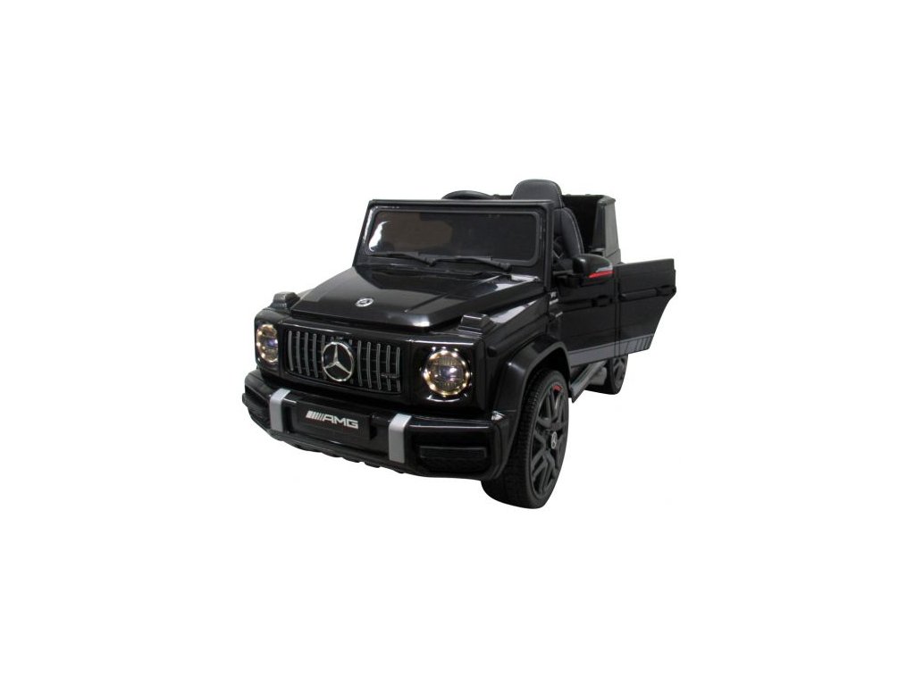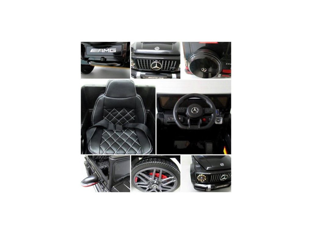 Детска лицензирана акумулаторна кола Mercedes G63 черно с богато оборудване и иновативен дизайн. Оборудвана е с EVA пенообразни гуми, които са тихи и не създават шум при каране.