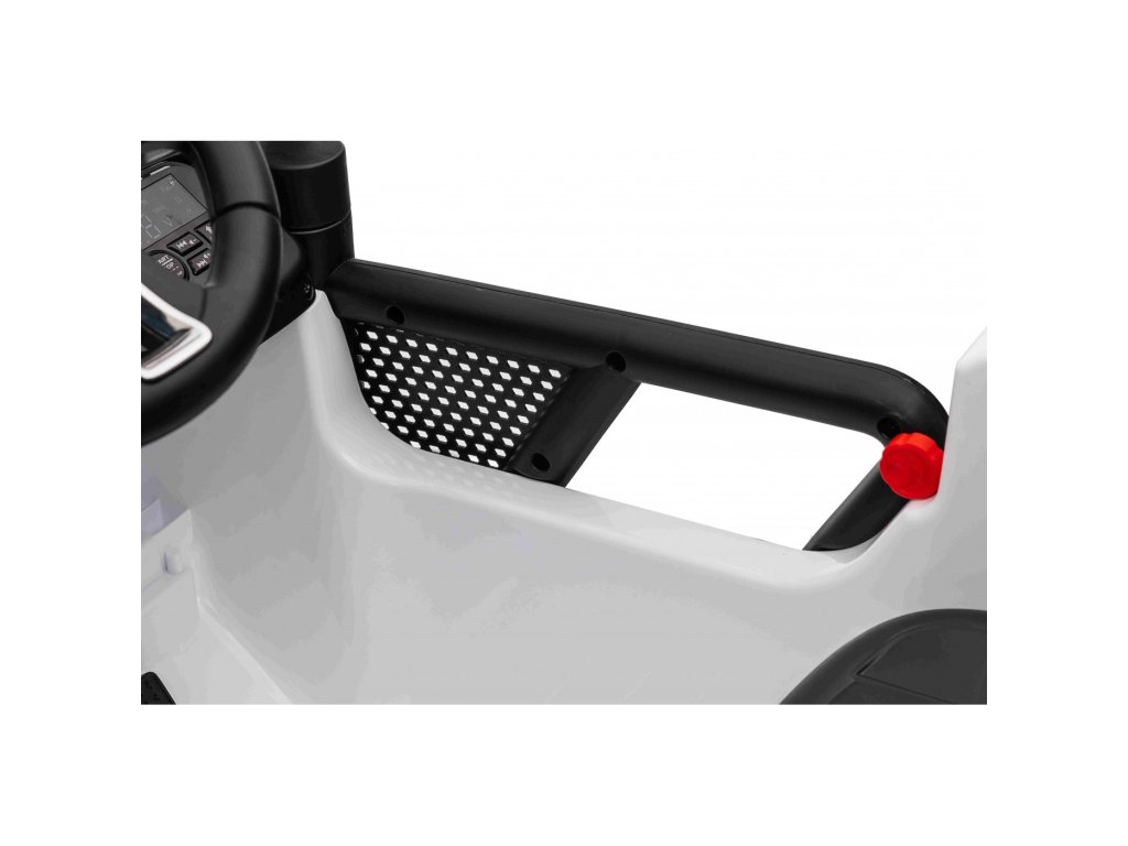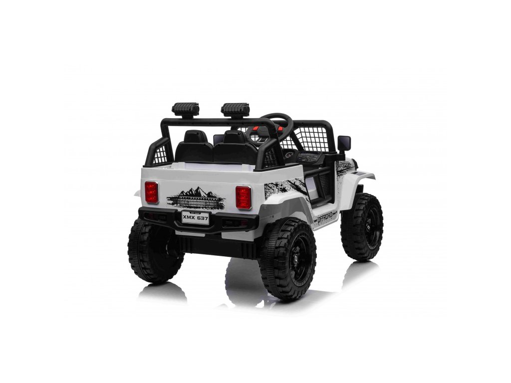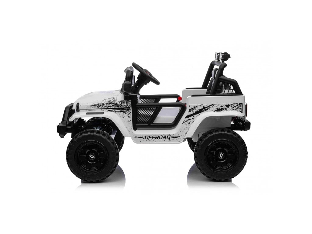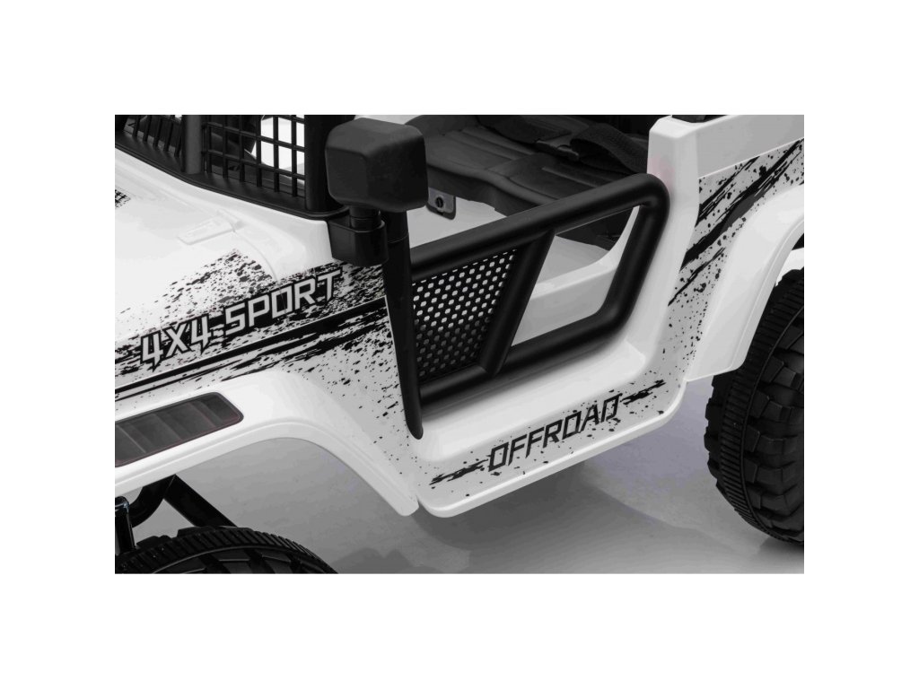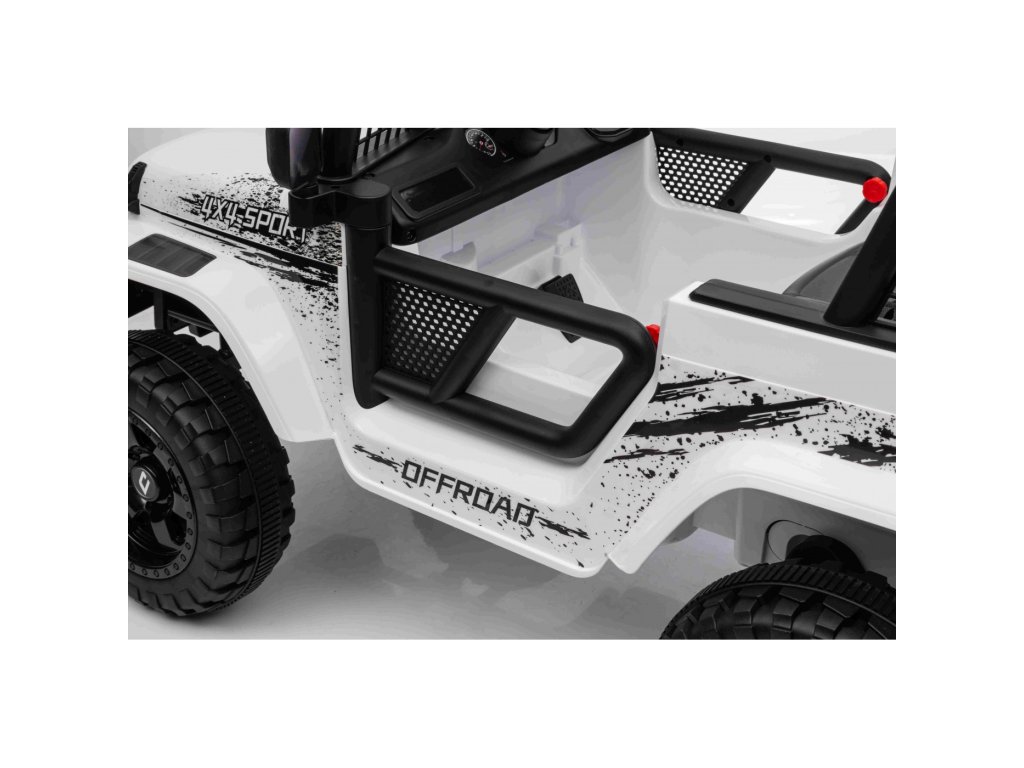 Акумулаторна кола OFF ROAD 4x4 SPORT бяла с четири мотора с обща мощност от 140W е задължителна във всяко детско гаражче. Колата се захранва от батерия с капацитет 12V 10Ah. Максималното допустимо тегло на возилото е 50 кг. По време на каране детето ще бъде очаровано от музикалния панел с MP3, Bluetooth, USB, AUX, радио и слотове за SD карта.