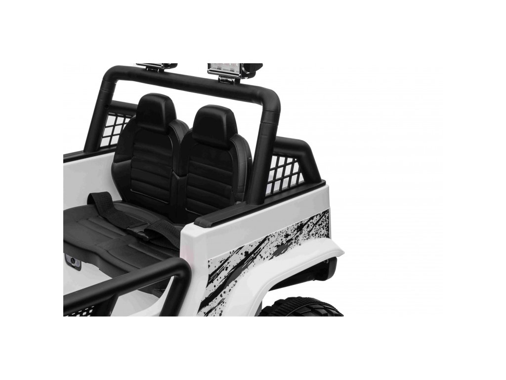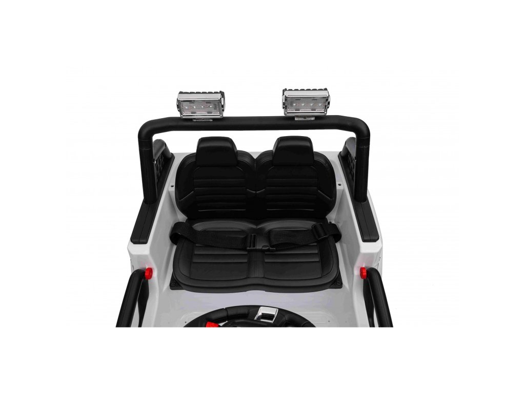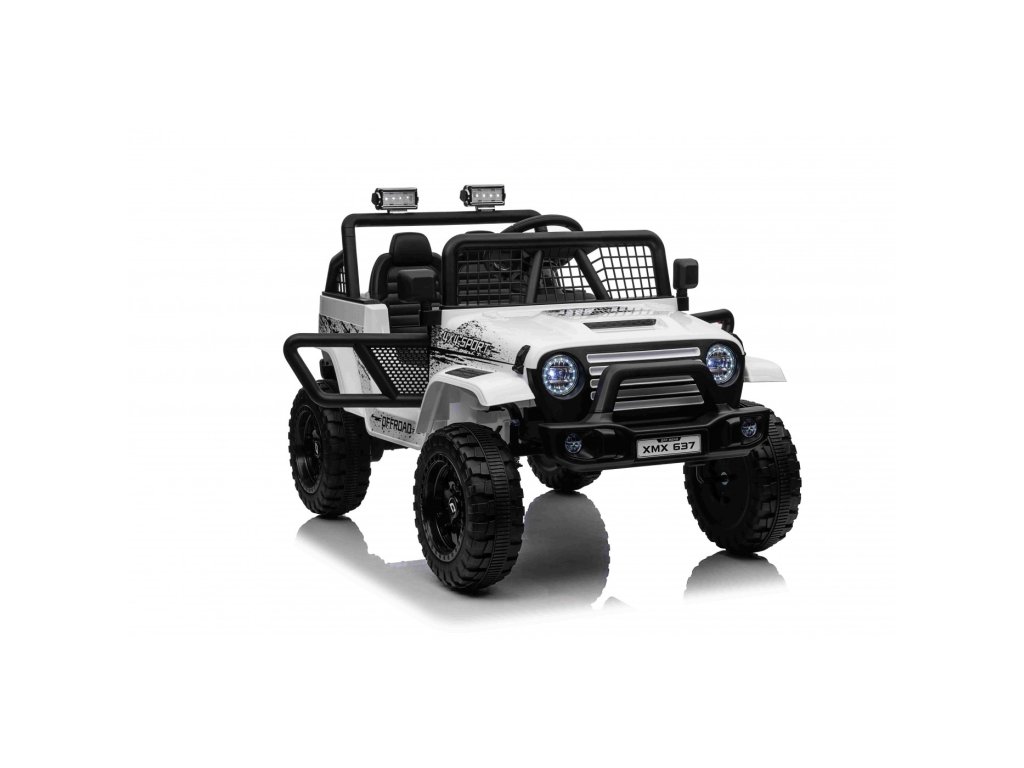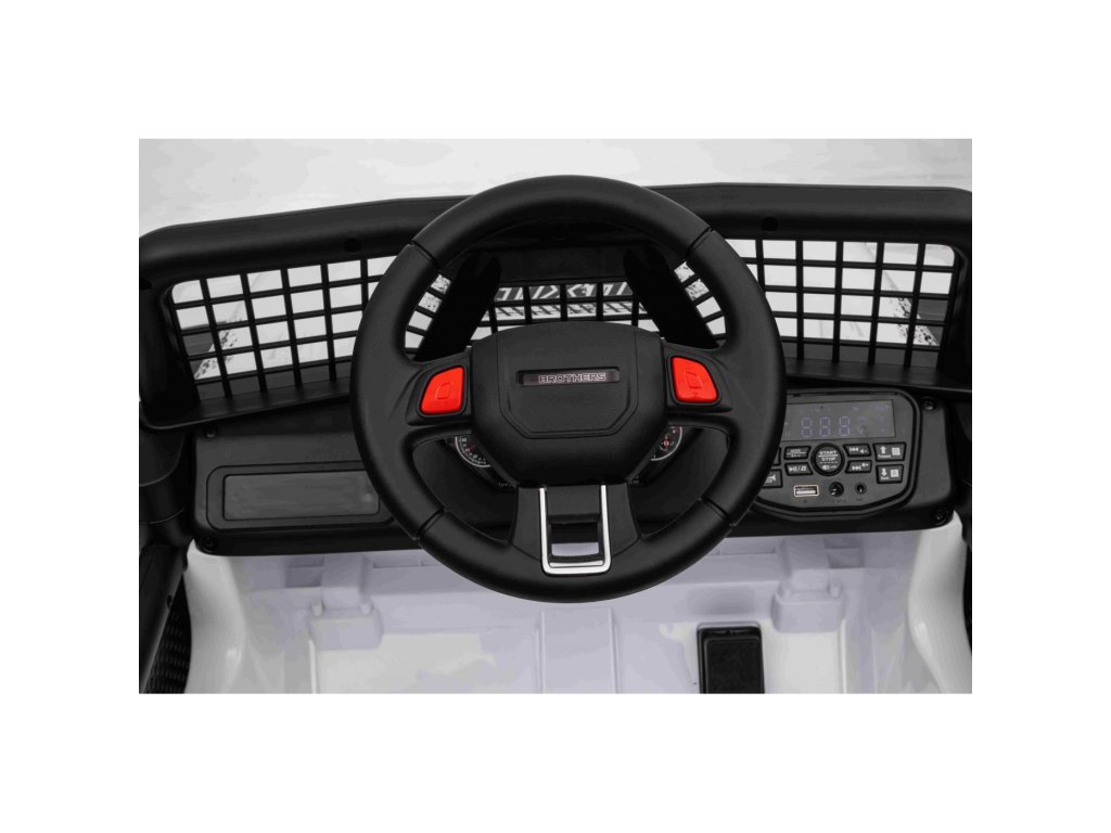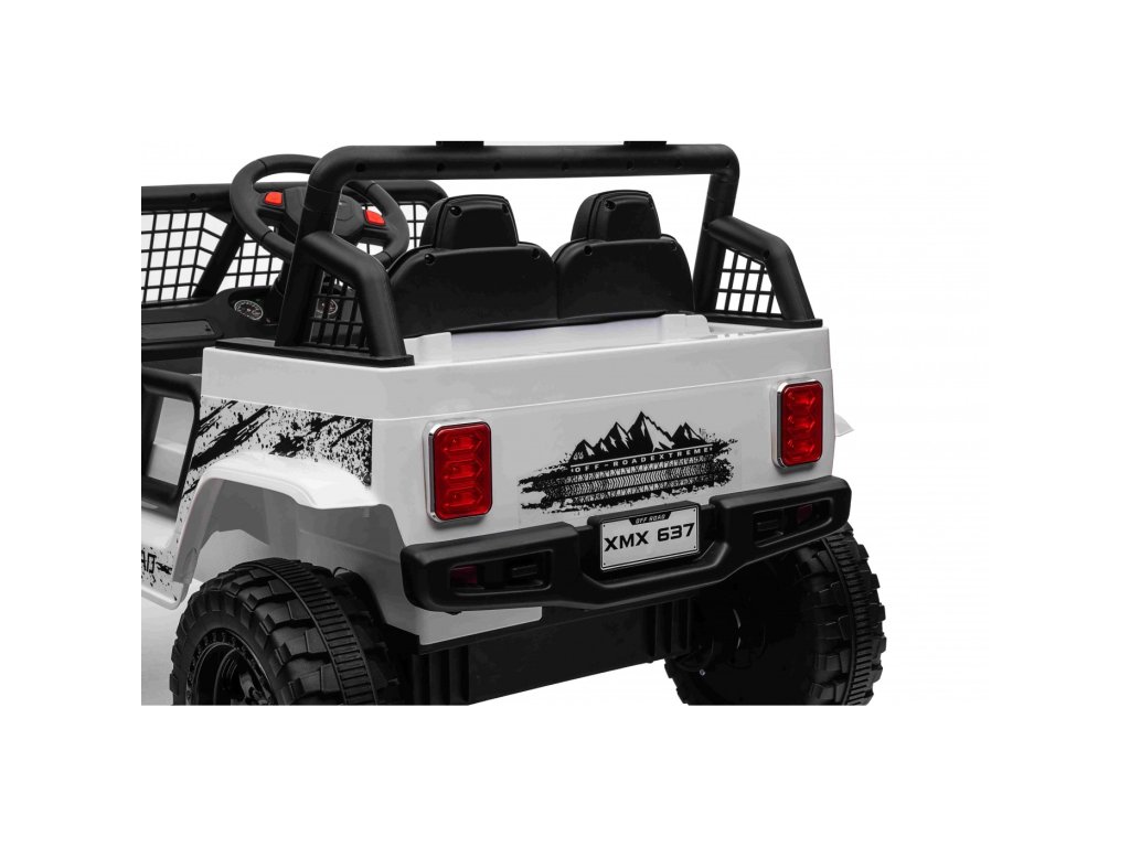 Акумулаторна кола OFF ROAD 4x4 SPORT бяла с четири мотора с обща мощност от 140W е задължителна във всяко детско гаражче. Колата се захранва от батерия с капацитет 12V 10Ah. Максималното допустимо тегло на возилото е 50 кг. По време на каране детето ще бъде очаровано от музикалния панел с MP3, Bluetooth, USB, AUX, радио и слотове за SD карта.