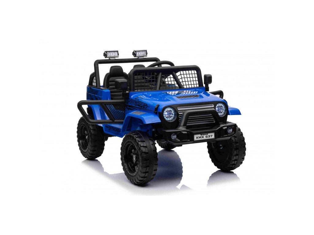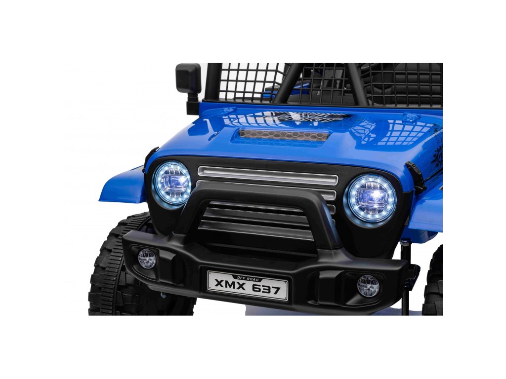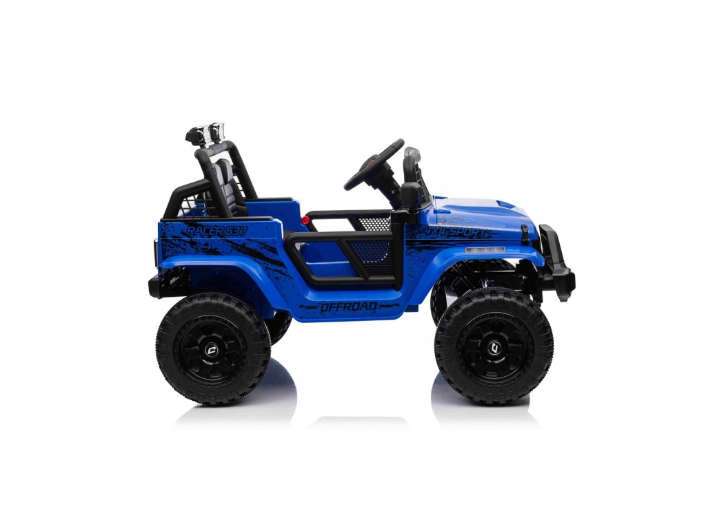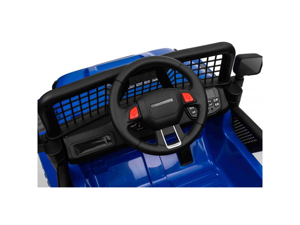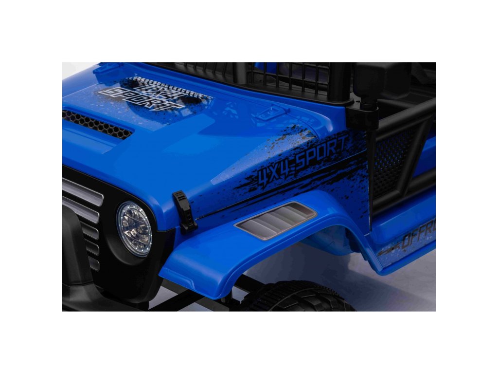 Акумулаторната кола OFF ROAD 4x4 SPORT синьо с четири мотора с обща мощност от 140W е незаменима в детския гараж. Колата се захранва от акумулатор с капацитет 12V 10Ah. Максималното натоварване на возилото е 50 кг. По време на каране детето ще бъде привлечено от музикалния панел с MP3, Bluetooth, USB, AUX, радио и слот за SD карта.