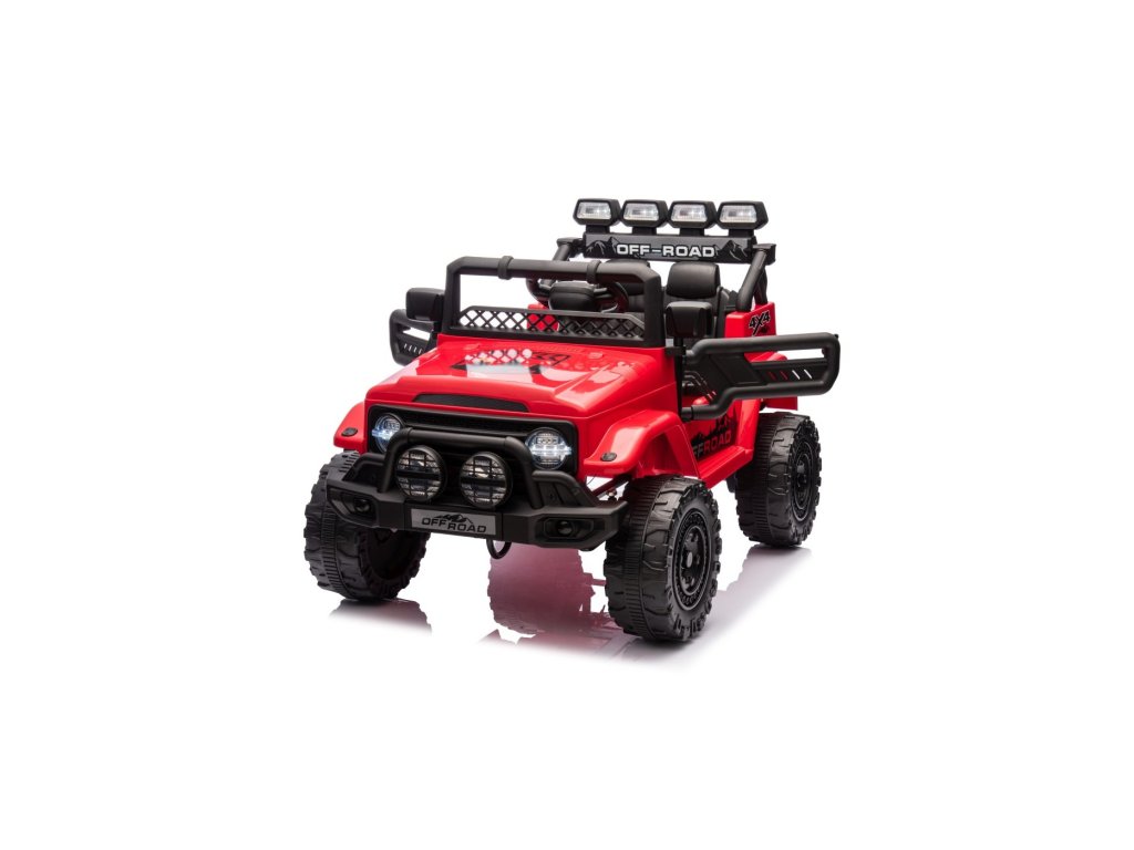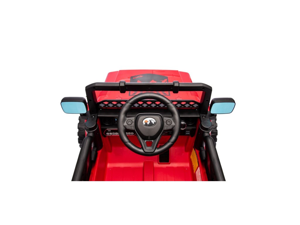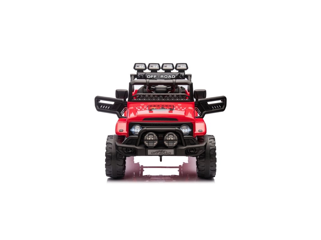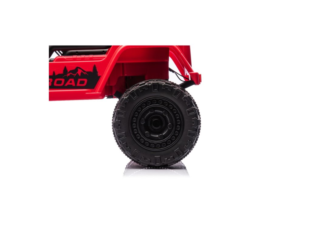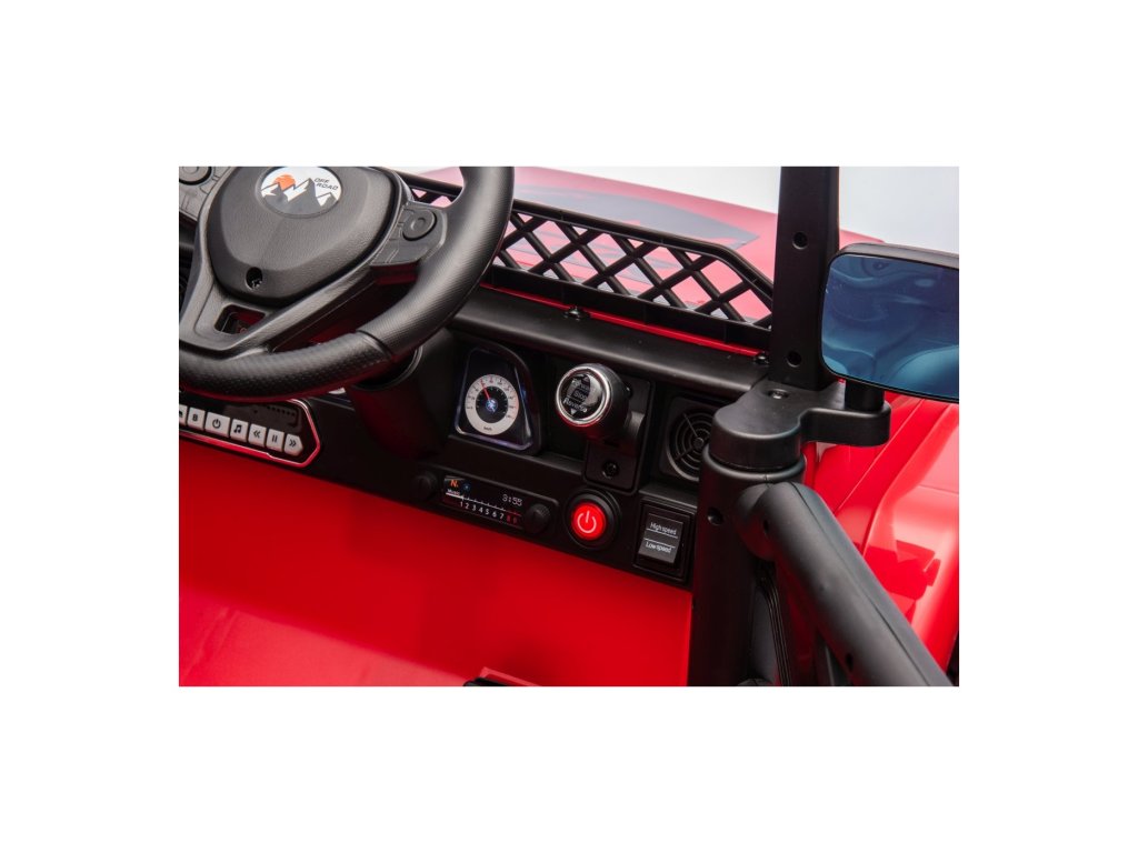 Детска акумулаторна кола Акумулаторна кола Off-Road Climber 4x4 червена с четири мотора с обща мощност 110W е задължителна за всяко детско паркинг пространство. Кола е захранвана от батерия с капацитет 12V 7Ah. Максималното допустимо натоварване на возилото е 30 кг. По време на каране детето ще бъде привлечено от музикалния панел с MP3, AUX, Bluetooth и USB.