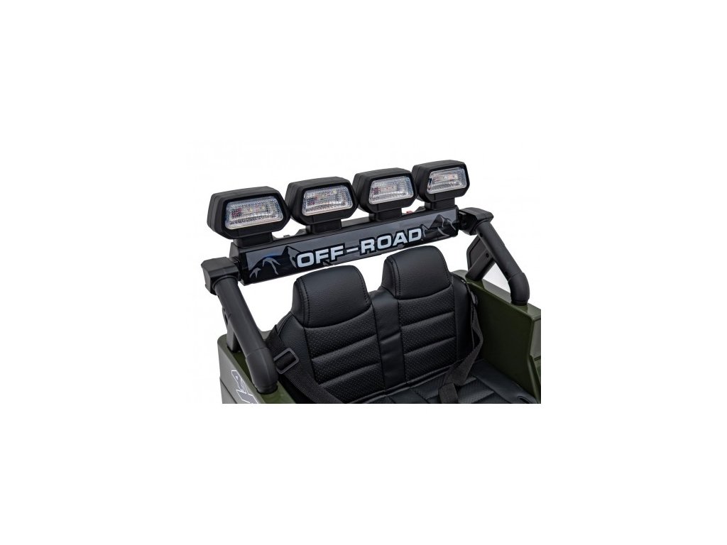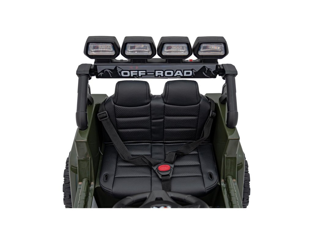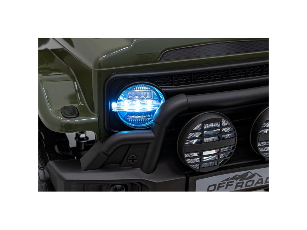 Детска електрическа Акумулаторна кола Off-Road Climber 4x4 зелена с четири мотора с обща мощност 110W е незаменима в детската автогараж. Колата се захранва с акумулатор с капацитет 12V 7Ah. Максималното натоварване на превозното средство е 30 кг. По време на карането детето със сигурност ще бъде впечатлено от музикалния панел с MP3, AUX, Bluetooth и USB.