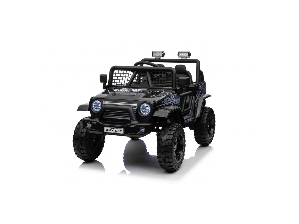 Акумулаторната кола OFF ROAD EXTREME 4x4 черна 24V | 200W | 50 кг | EVA | LED | 2,4Ghz | ECO кожа с четири мотора и обща мощност от 200W е незаменима в детската гаражна колекция. Кола се захранва от акумулатор с капацитет 24V 5Ah. Максималното натоварване на колата е 50 кг. По време на каране детето ще се забавлява с музикалния панел, който включва MP3, Bluetooth, USB, AUX, радио и слот за SD карта.